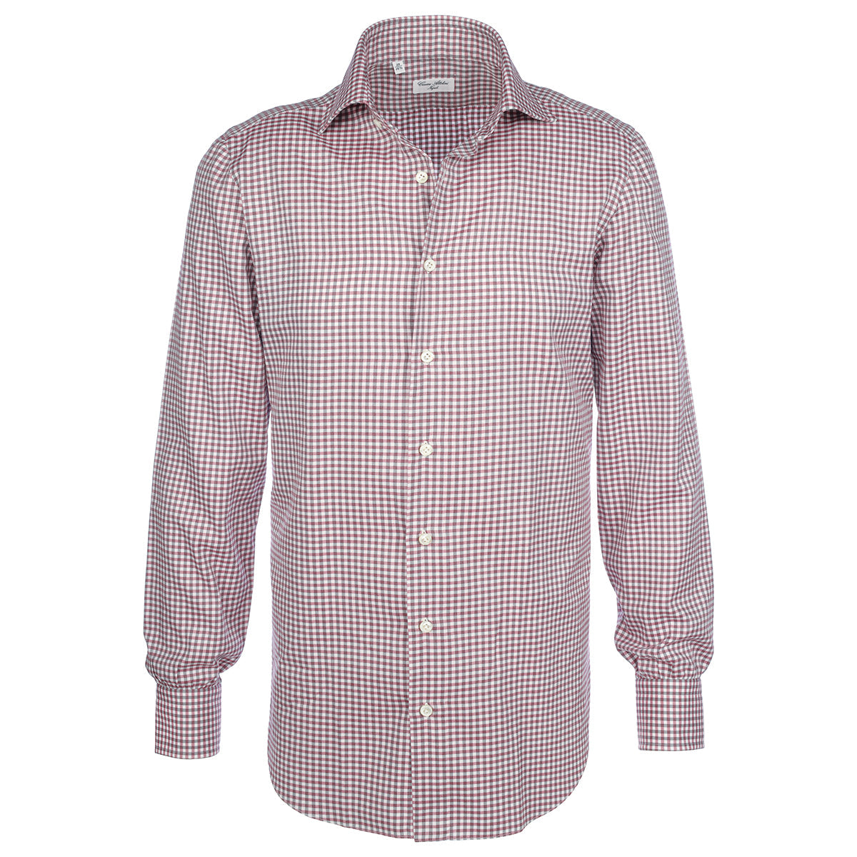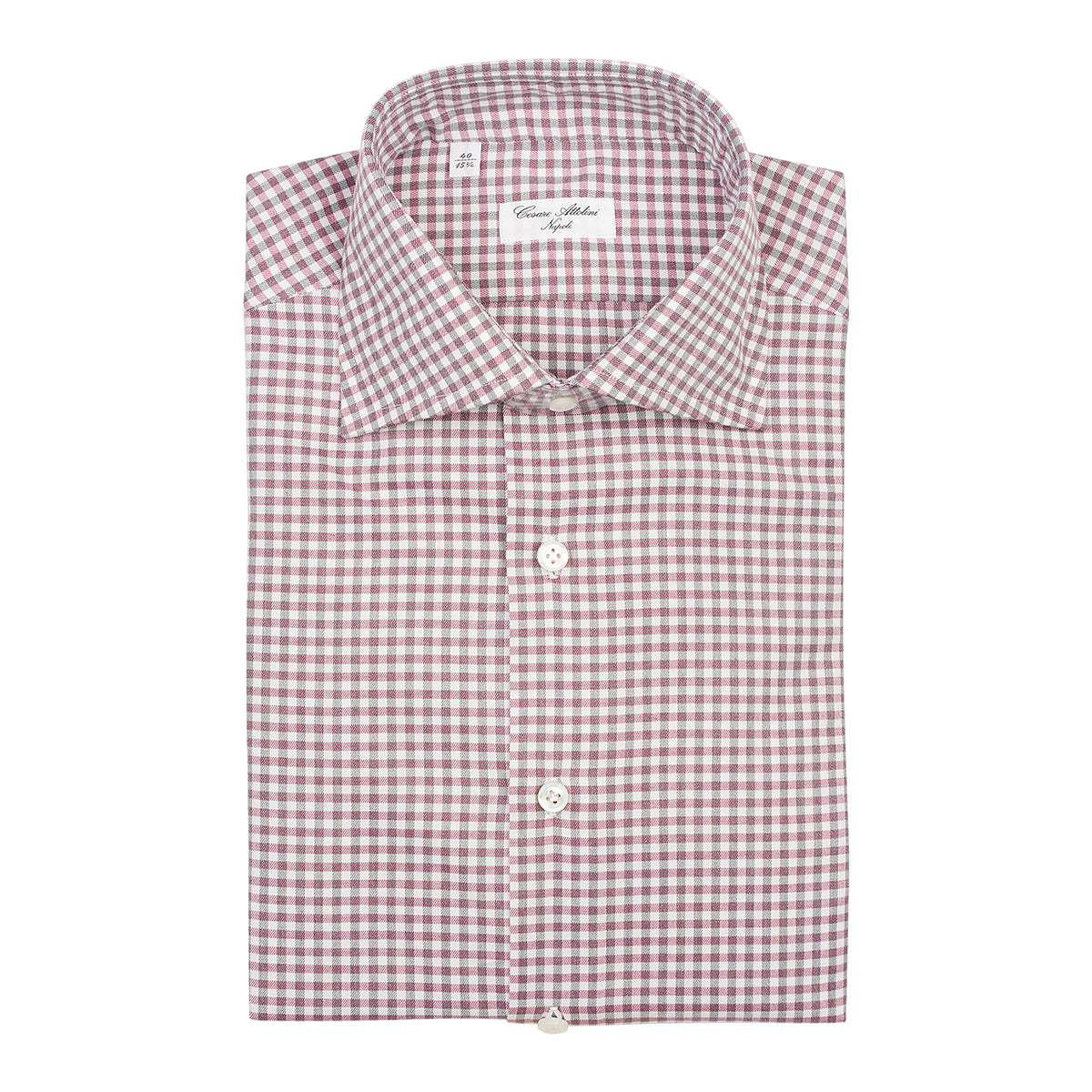 White flannel cotton shirt with pink and gray squares. Entirely cut and sewn by hand by the skilled hands of our shirt-makers in our workshop. A versatile shirt, ideal for creating a leisure look and ensuring comfort without compromising elegance.