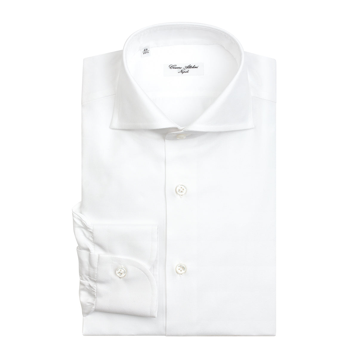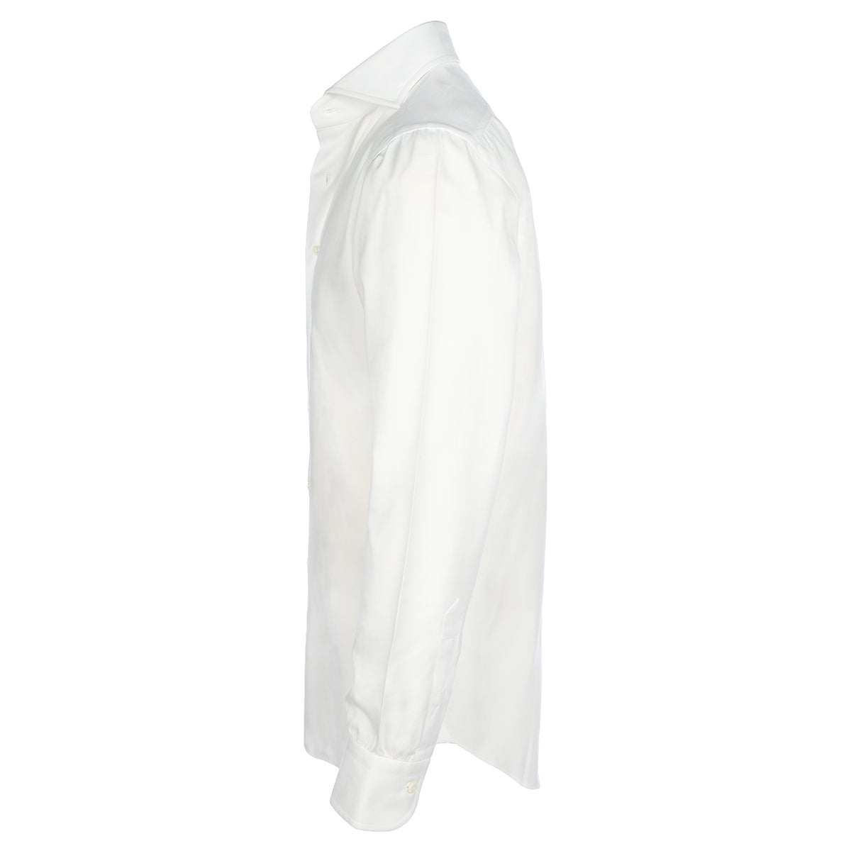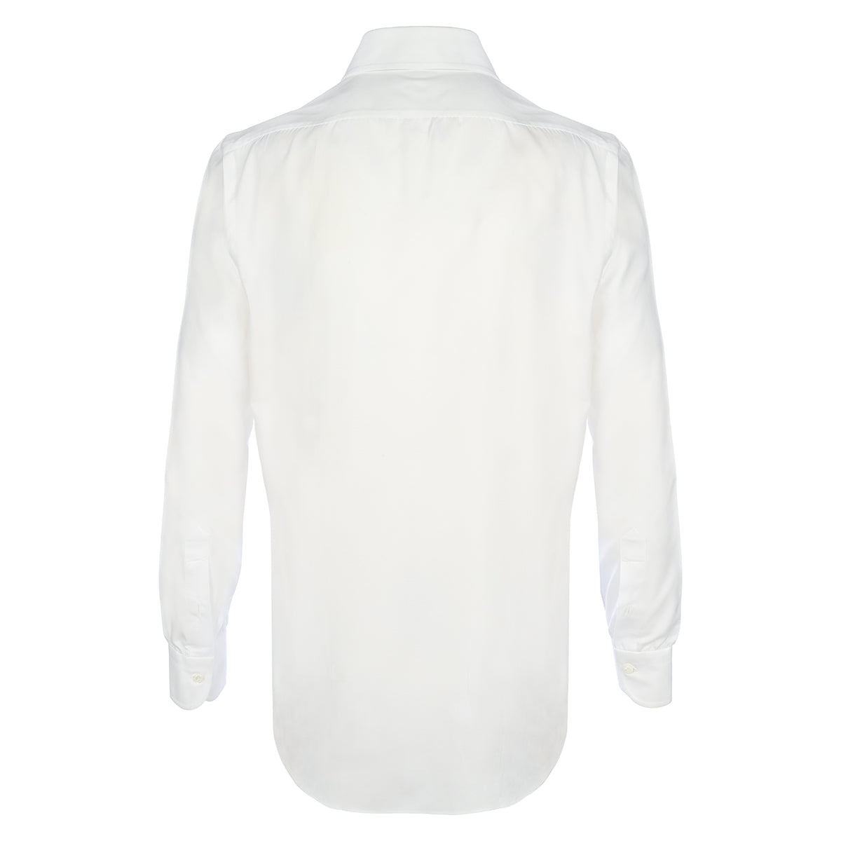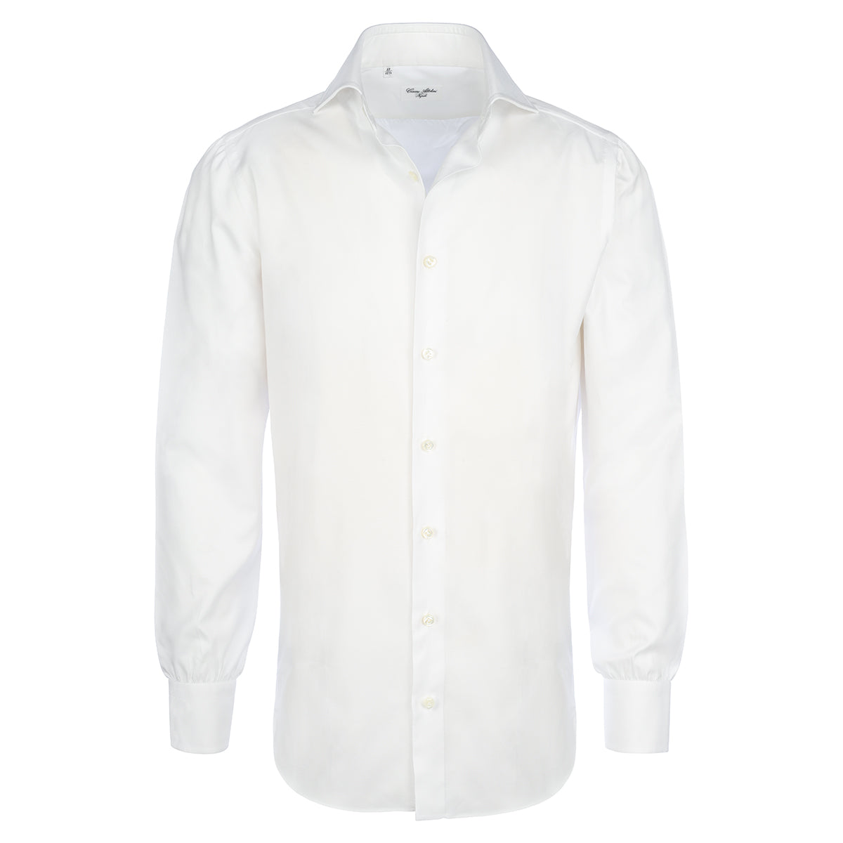 Solid white high quality cotton shirt. Entirely cut and sewn by hand by the skilled hands of our shirt-makers in our workshop. This shirt offers softness and a pleasant feeling of lightness on the skin. To be worn both for business and during formal occasions.