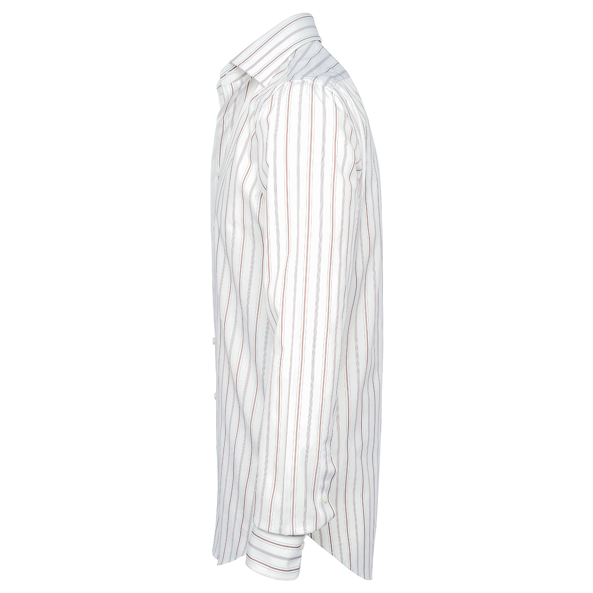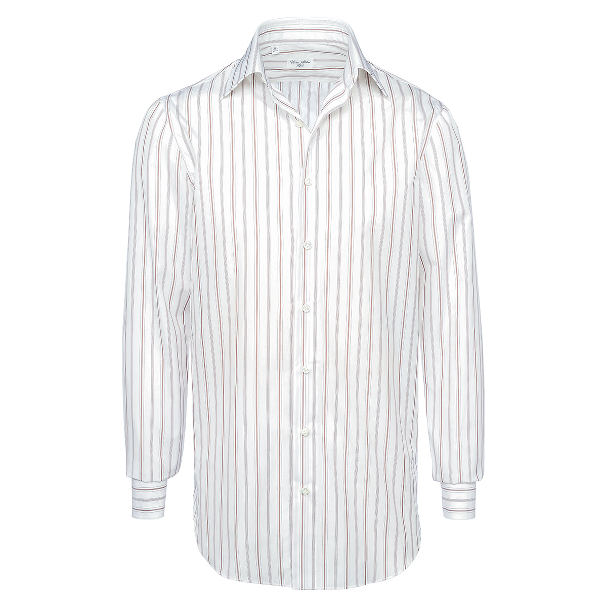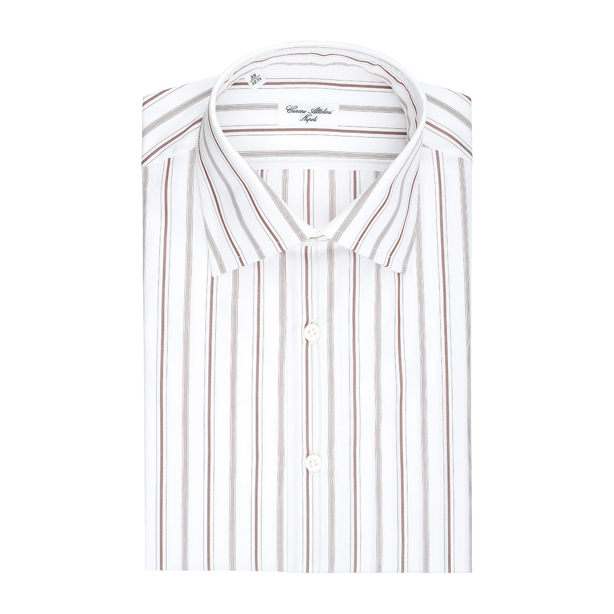 White and brown high quality cotton shirt with alternating striped pattern. Entirely cut and sewn by hand by the skilled hands of our shirt-makers in our workshop. This shirt offers softness and a pleasant feeling of lightness on the skin. Perfect for completing a formal and business look.