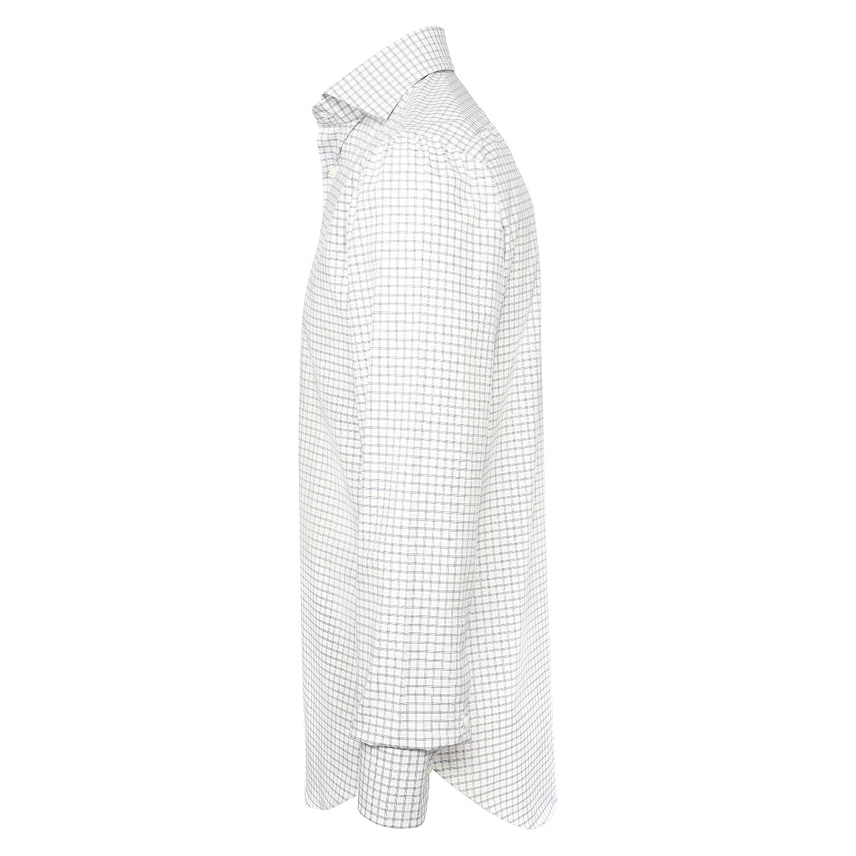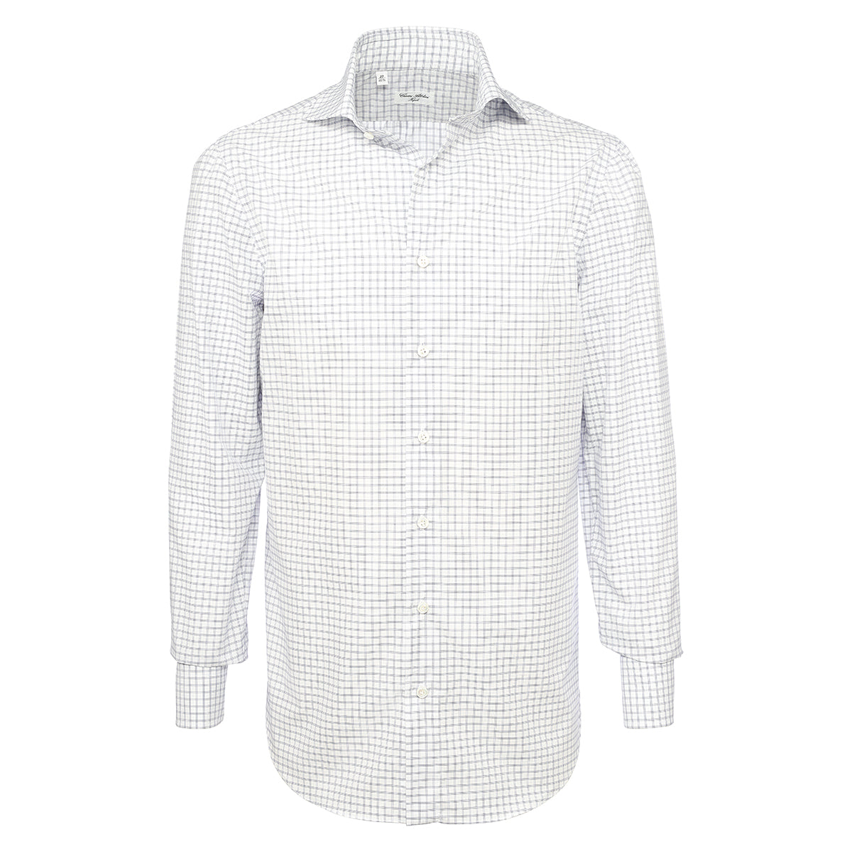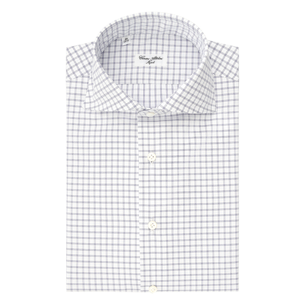 Shirt in white check blue and light blue cotton entirely cut and sewn by hand in our laboratory by the skilled hands of our shirt-makers. It is a versatile shirt ideal for creating a leisure look ensuring comfort and practicality without compromising on elegance.