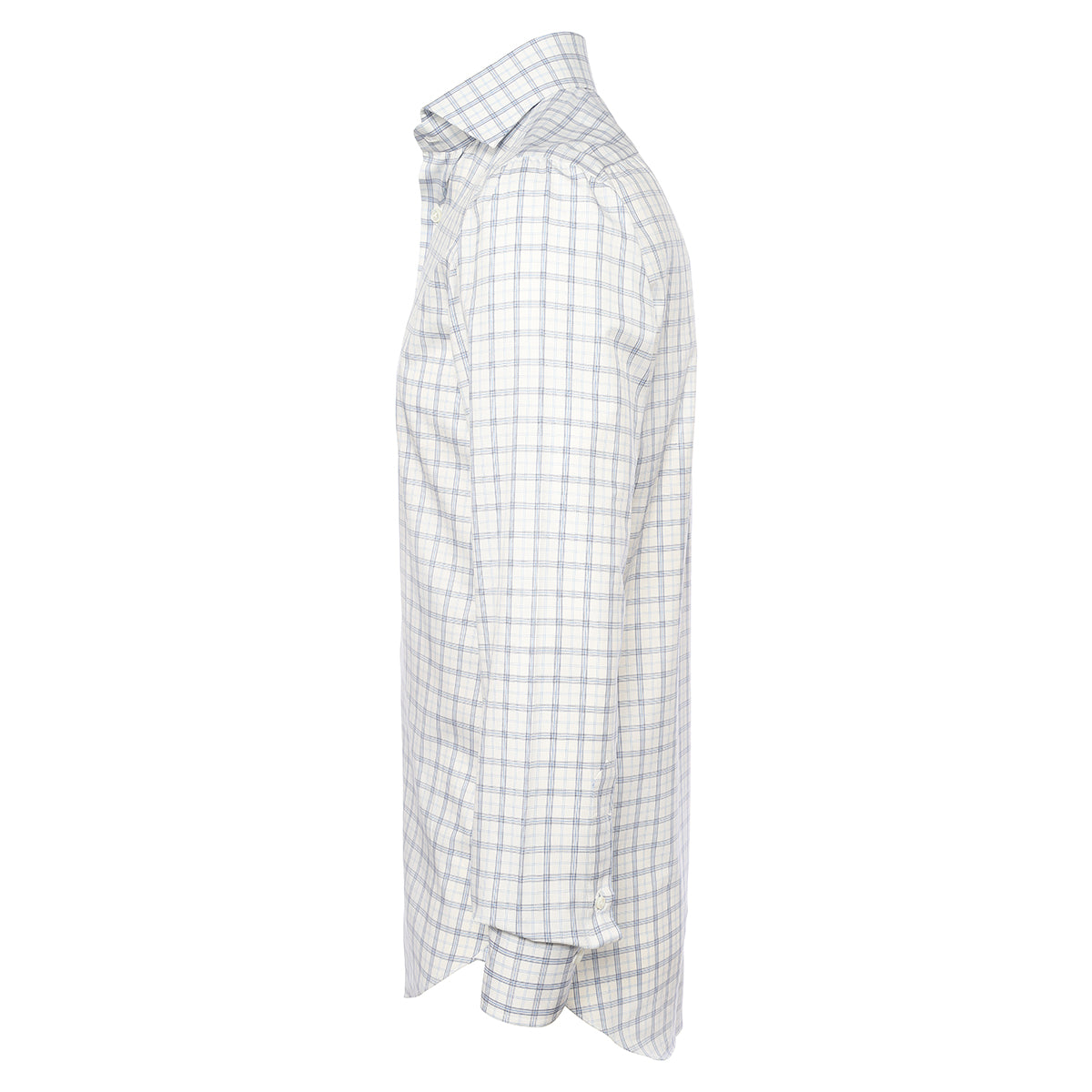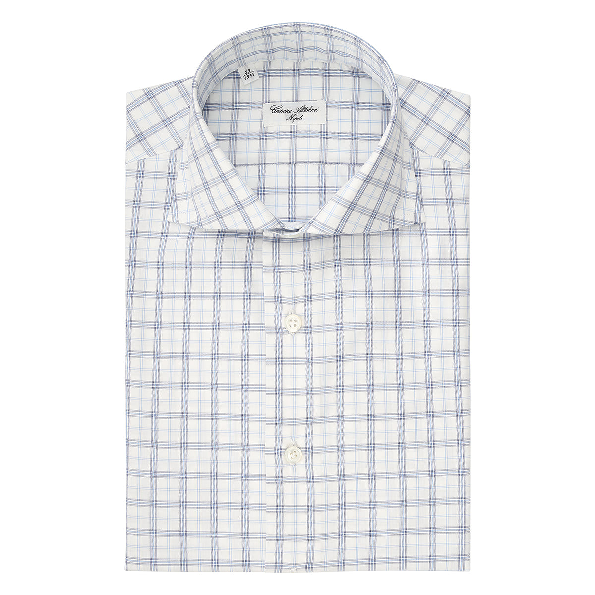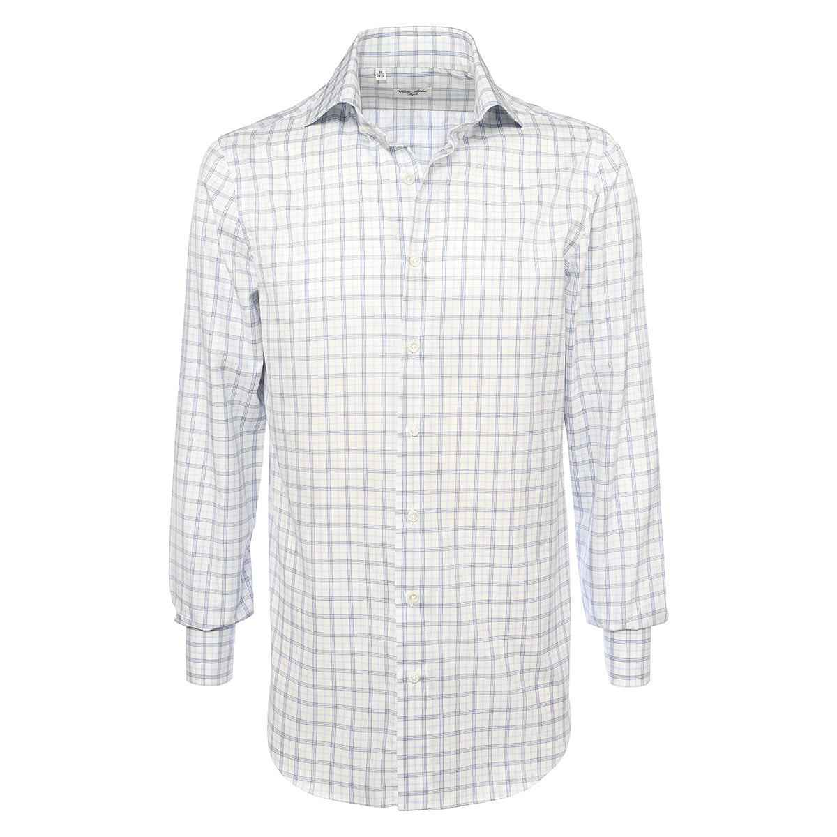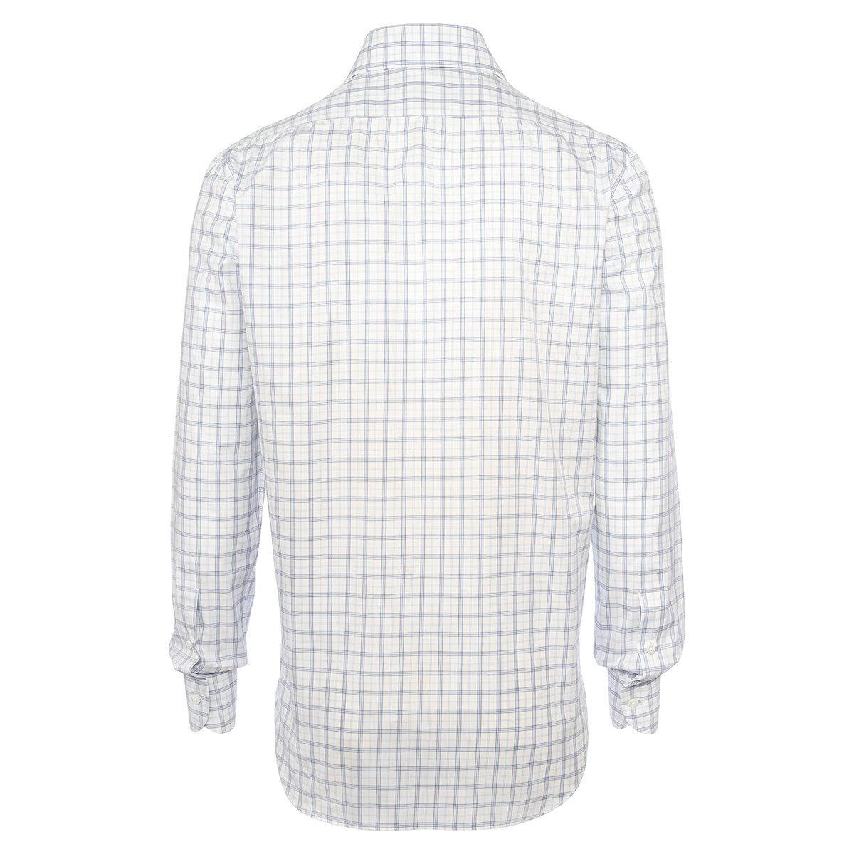 Shirt in white check blue and light blue cotton entirely cut and sewn by hand in our laboratory by the skilled hands of our shirt-makers. It is a versatile shirt ideal for creating a leisure look ensuring comfort and practicality without compromising on elegance.