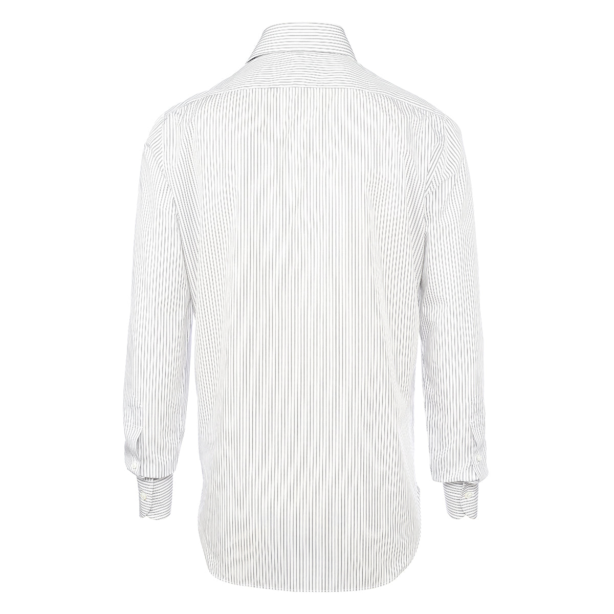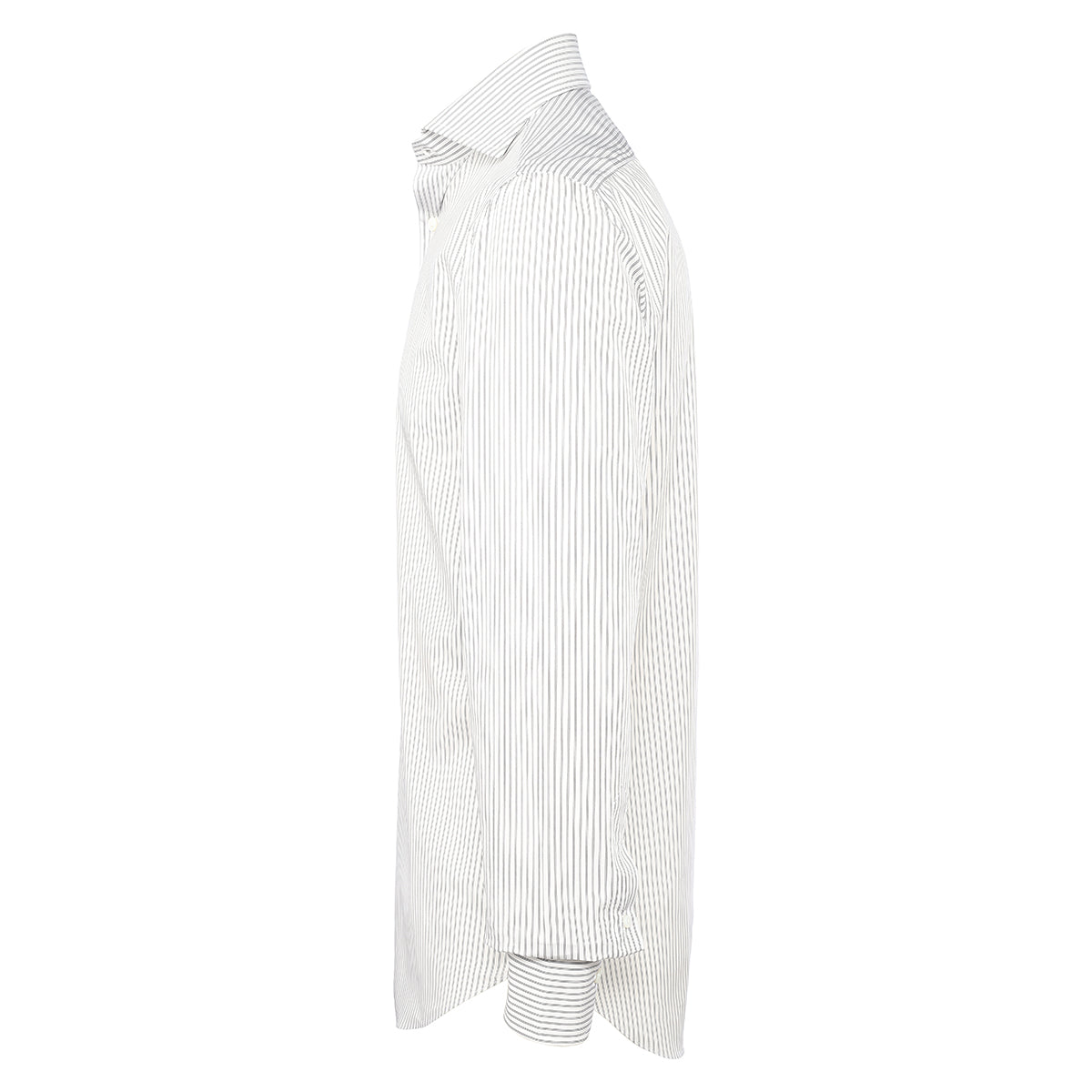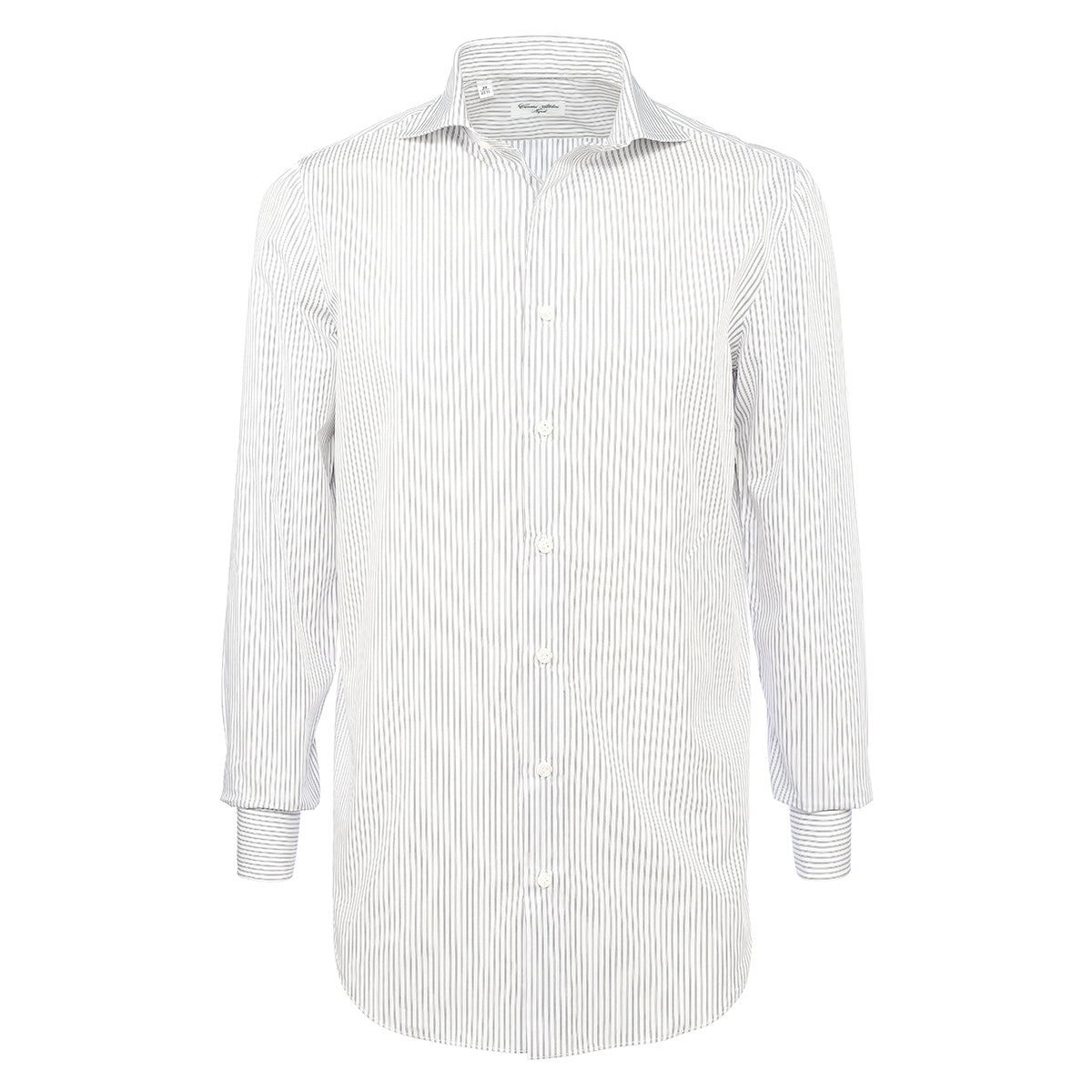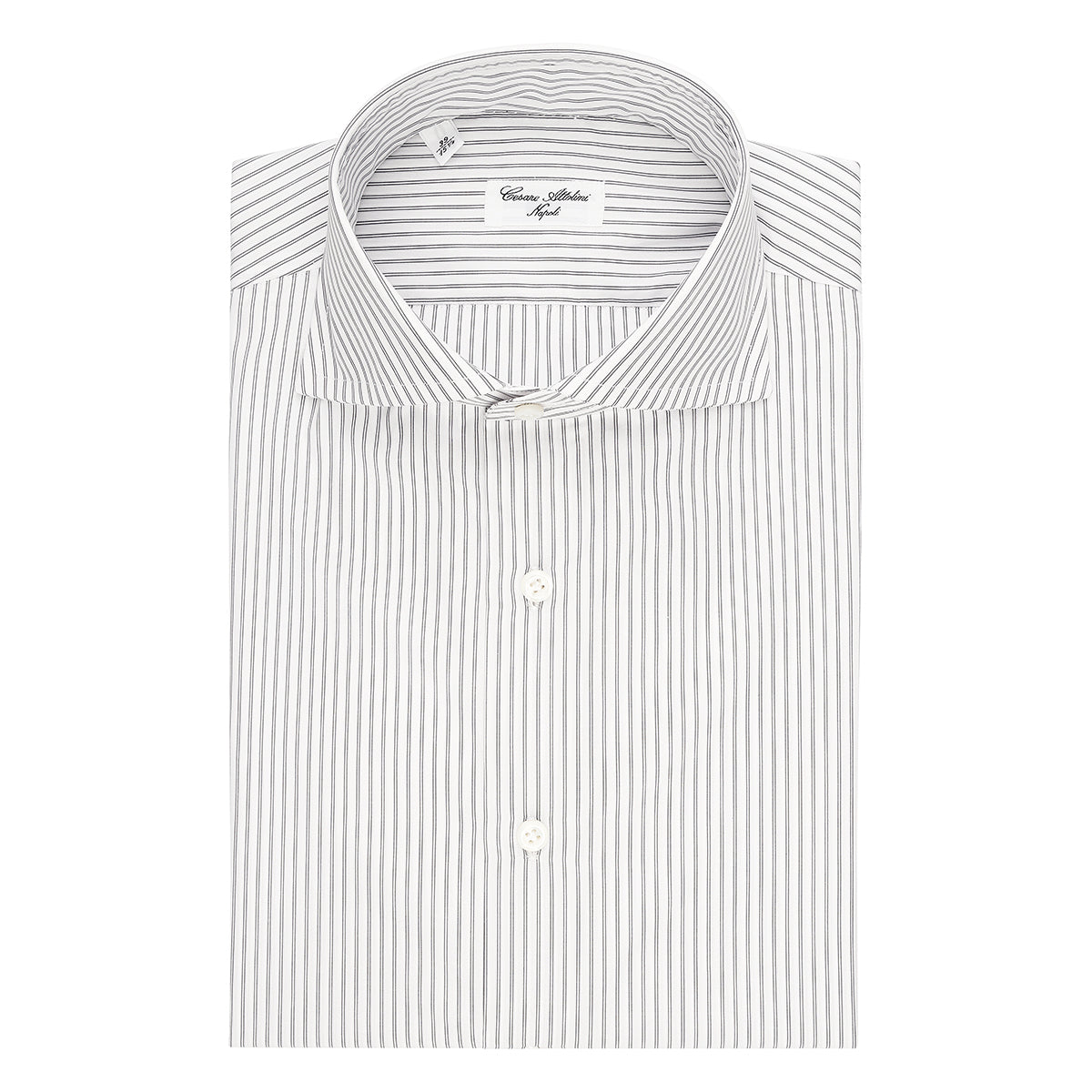 Dark gray white cotton shirt with alternating striped pattern entirely hand-cut and sewn in our workshop by the skilled hands of our shirt-makers. It is a versatile shirt ideal for both business and formal occasions.