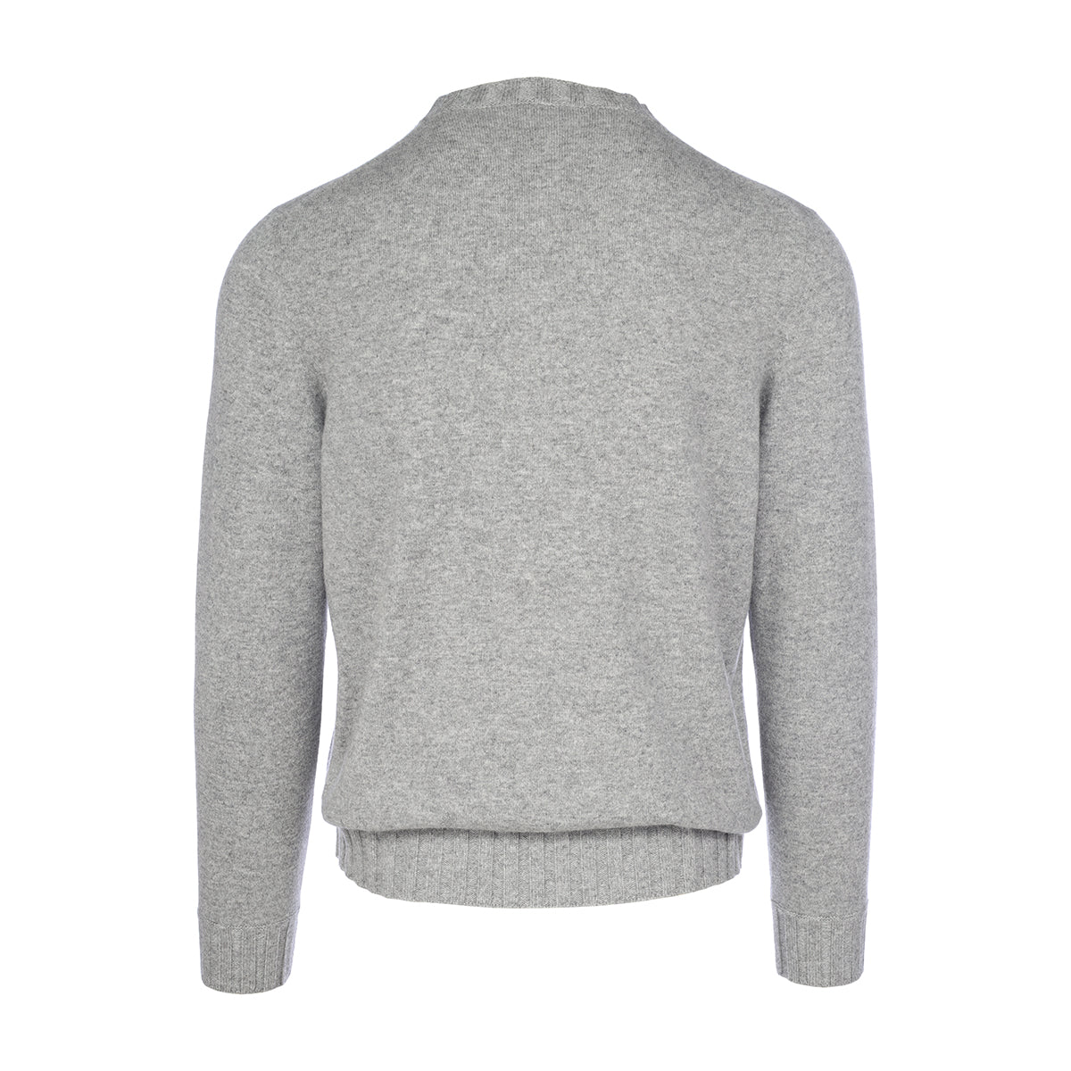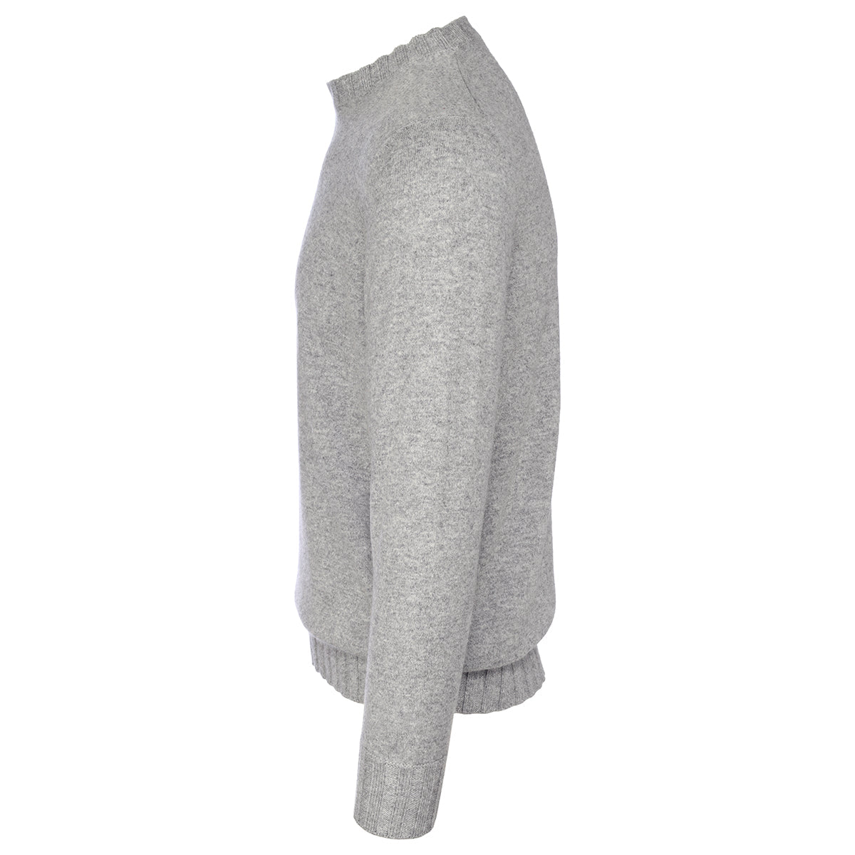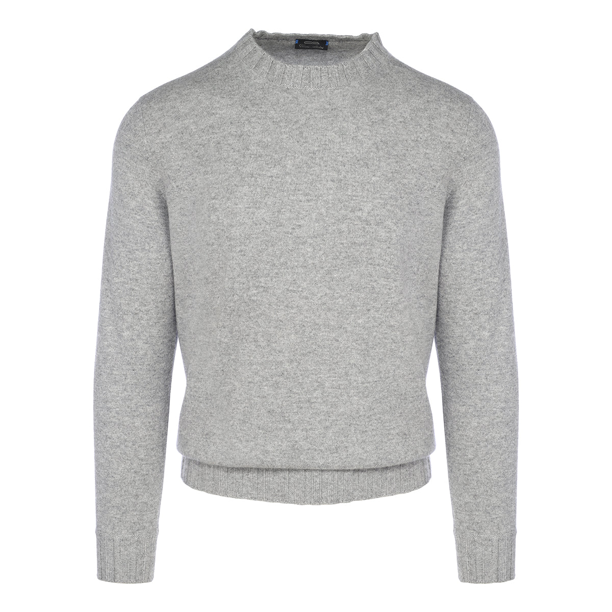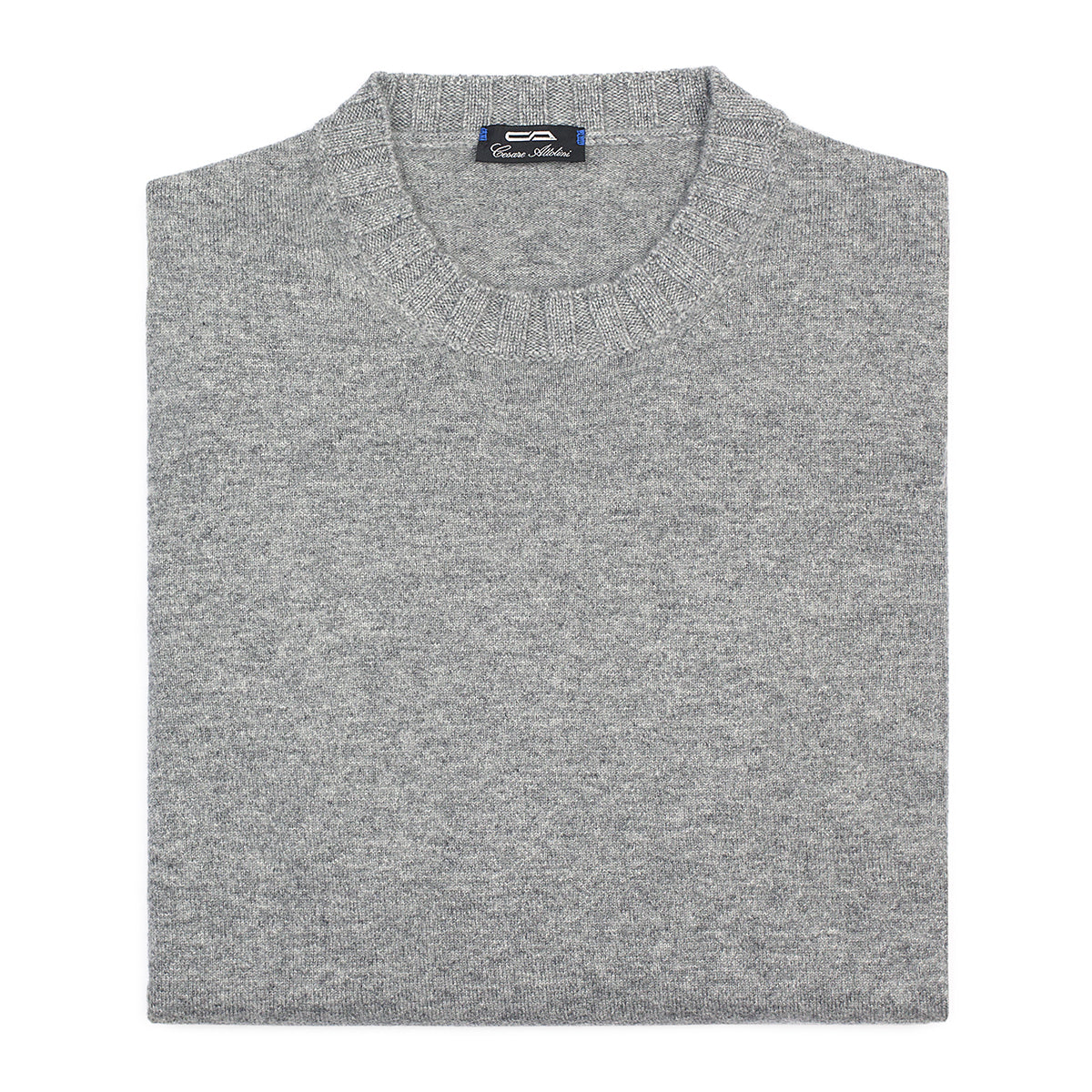 Crewneck in gray cashmere duvet with ribbed collar, cuffs and flounce. This garment is made in our artisan workshop on the shores of Lake Trasimeno. The precious pure cashmere yarn and the exclusive duvet processing make our garment unique.
