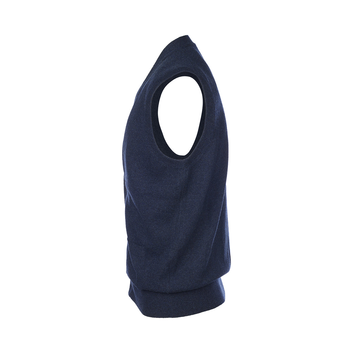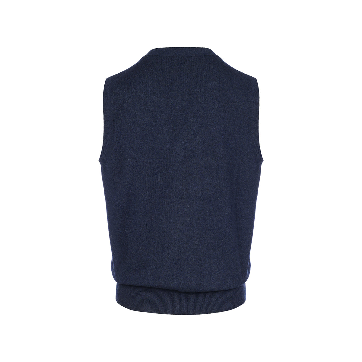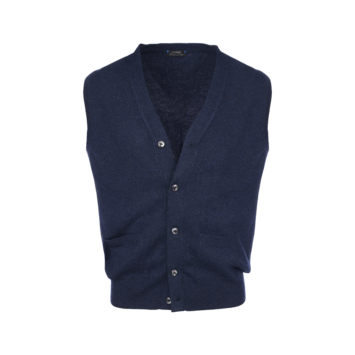 Blue cashmere waistcoat with buttons and two pockets. This garment is made in our artisan workshop on the shores of Lake Trasimeno. Perfect as a classic under-jacket.