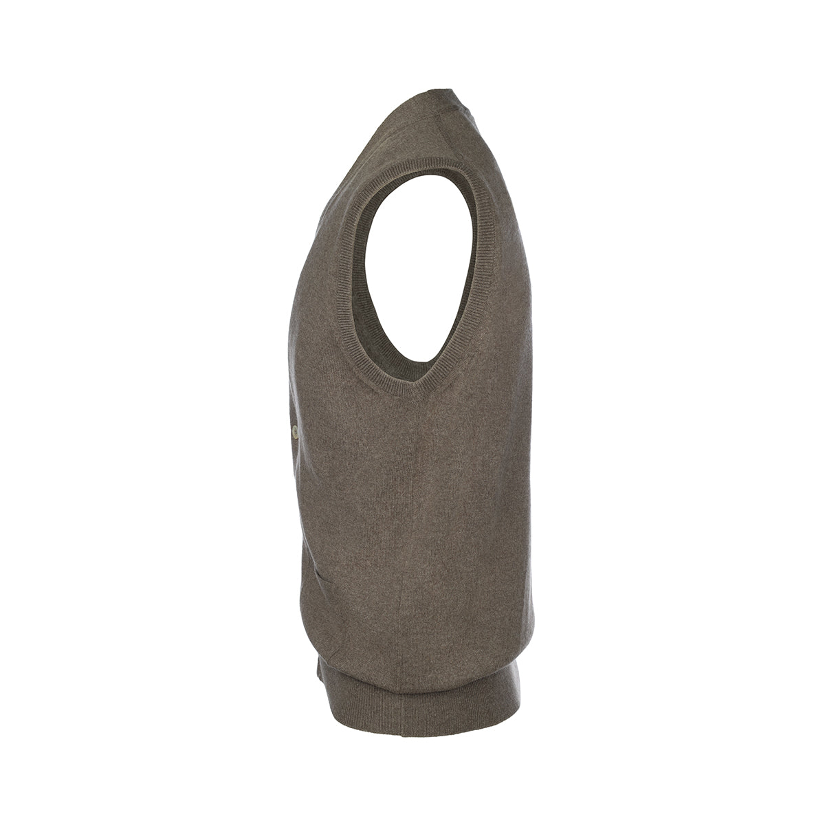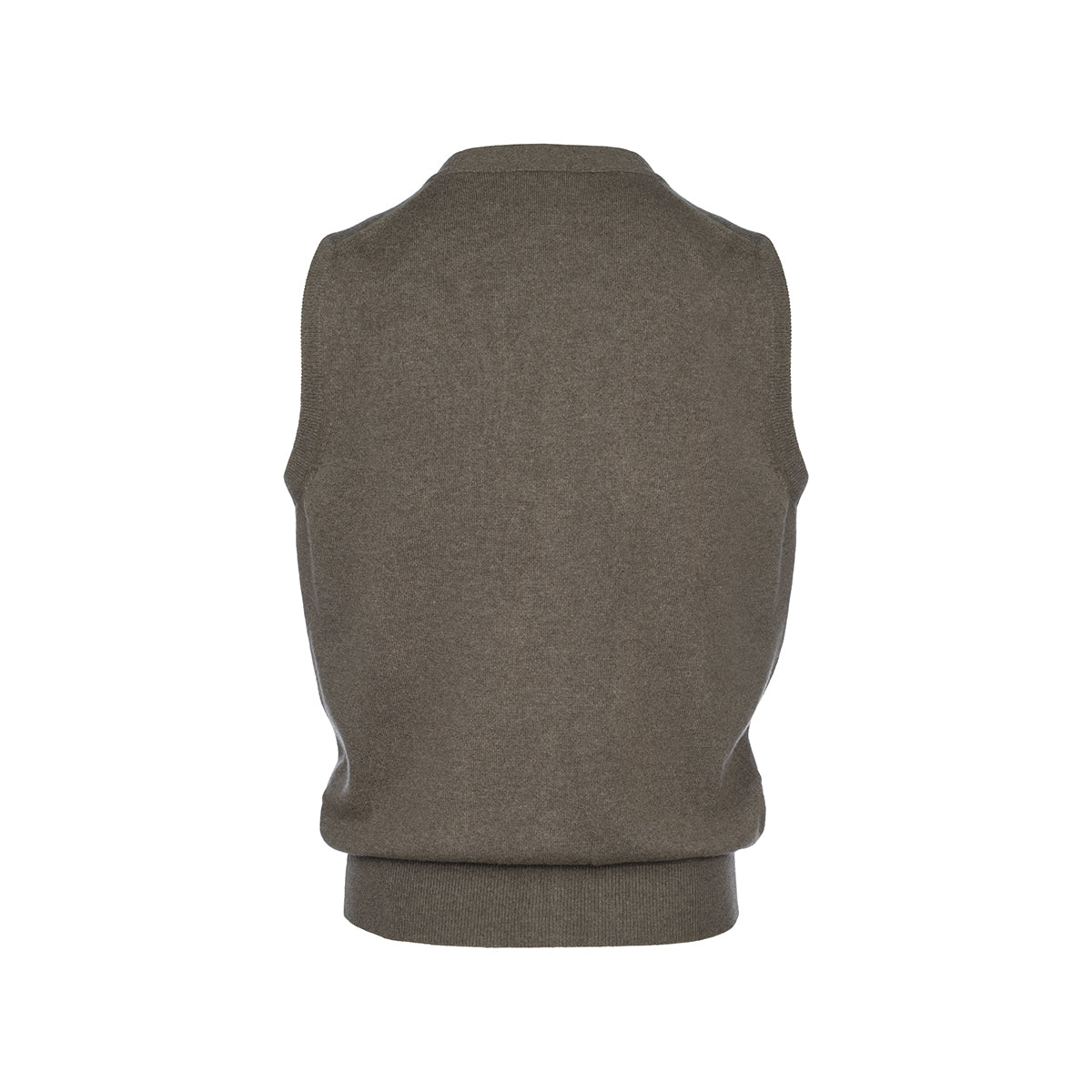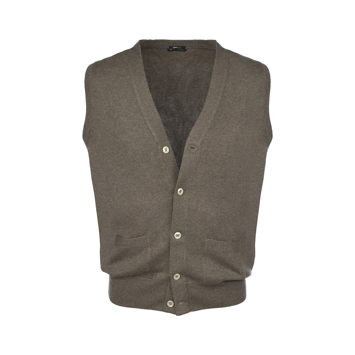 Dove gray cashmere waistcoat with buttons and two pockets. This garment is made in our artisan workshop on the shores of Lake Trasimeno. Perfect as a classic under-jacket.