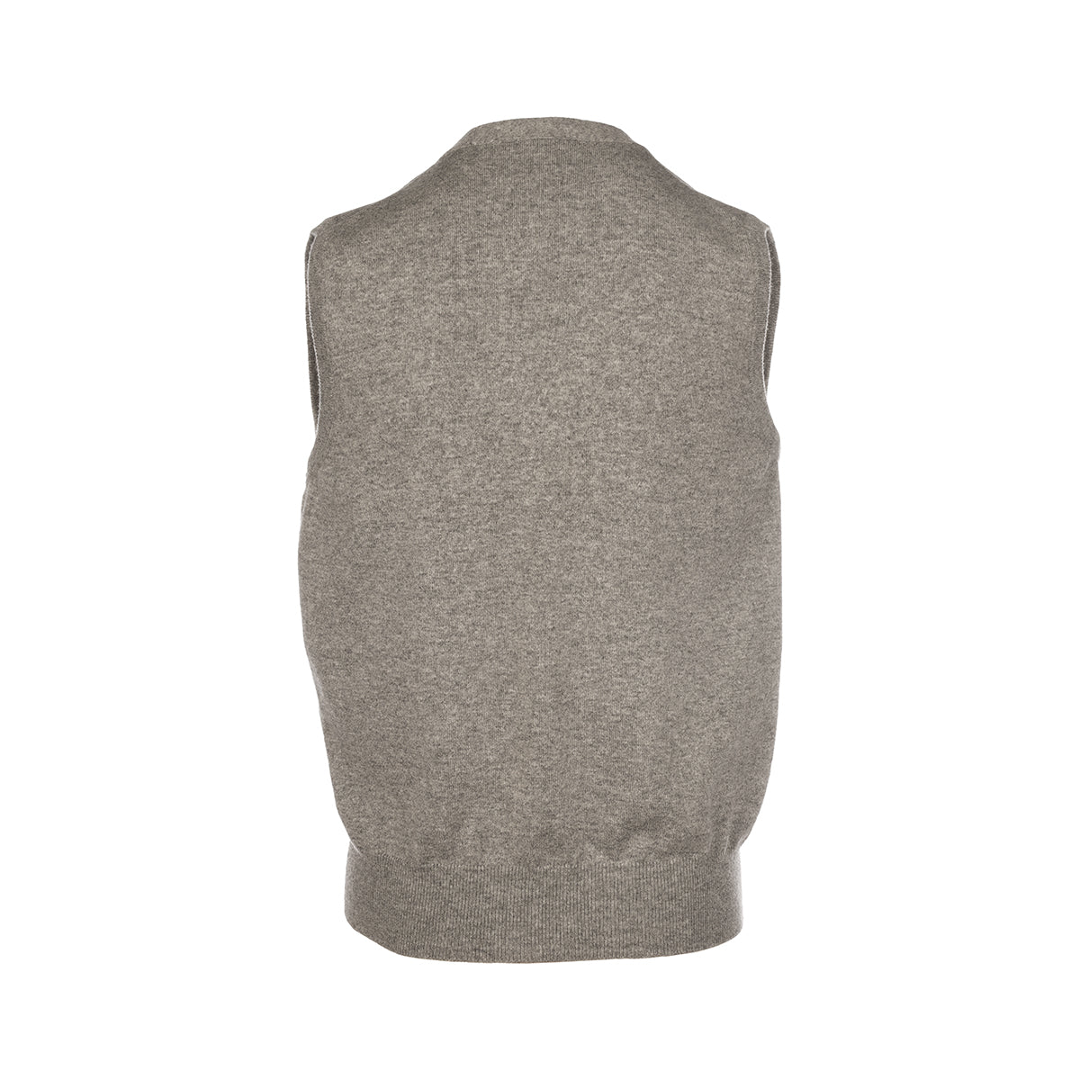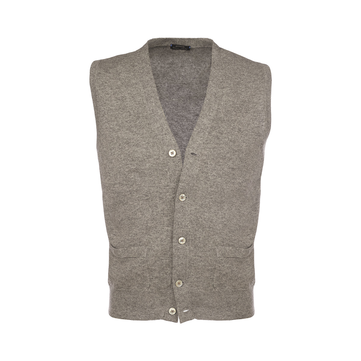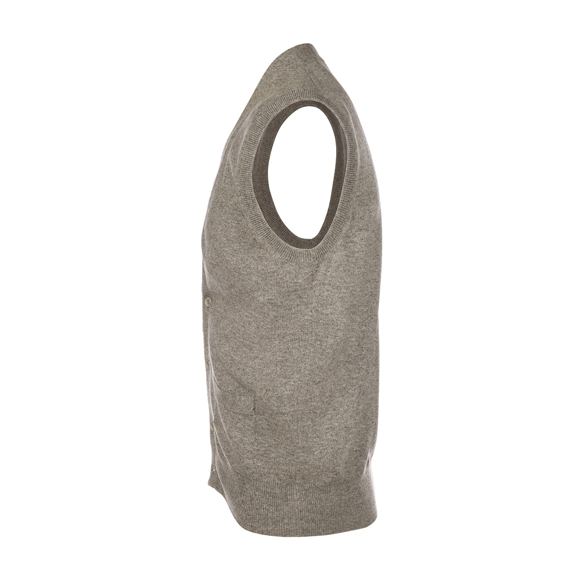 Beige cashmere waistcoat with buttons and two pockets. This garment is made in our artisan workshop on the shores of Lake Trasimeno. Perfect as a classic under-jacket.