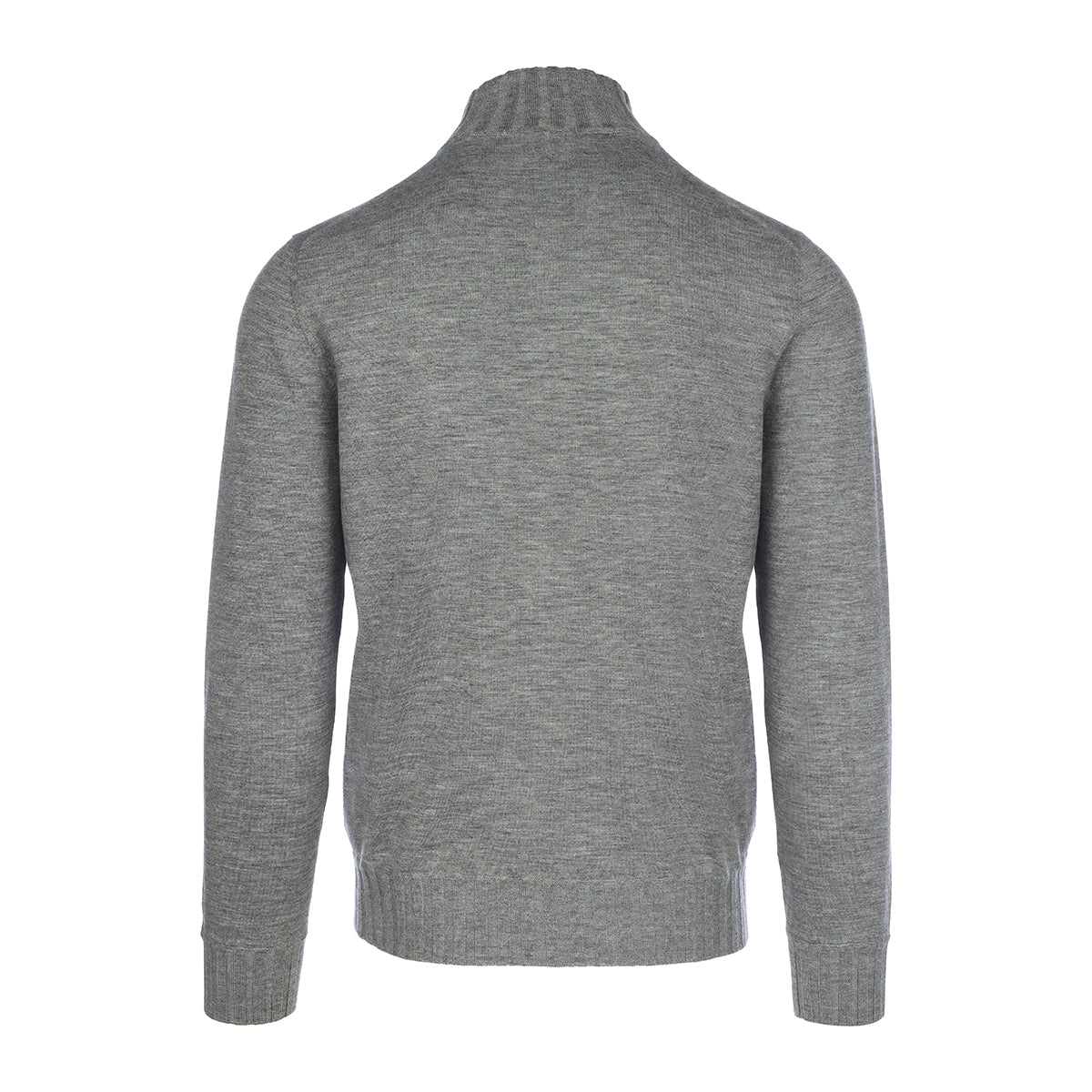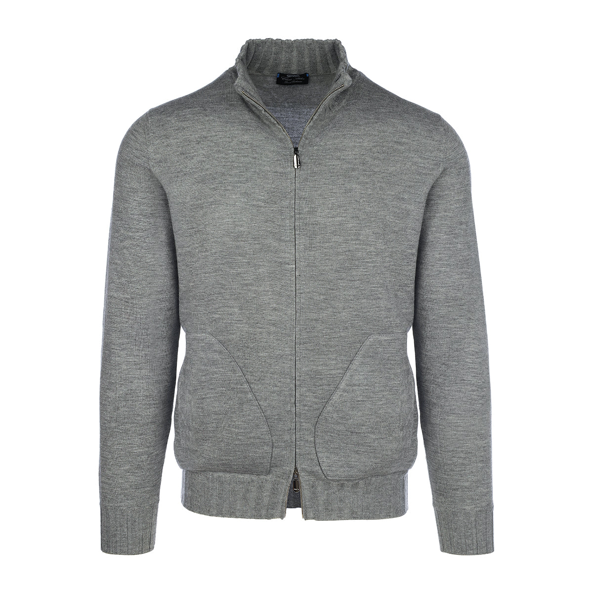 Duvet gray cashmere cardigan with double slider zip. Two pockets with ribbed collar, cuffs and flounce. This garment is made in our artisan workshop on the shores of Lake Trasimeno. The precious pure worsted cashmere yarn makes it a unique garment. Ideal for creating a leisure look and ensuring comfort.