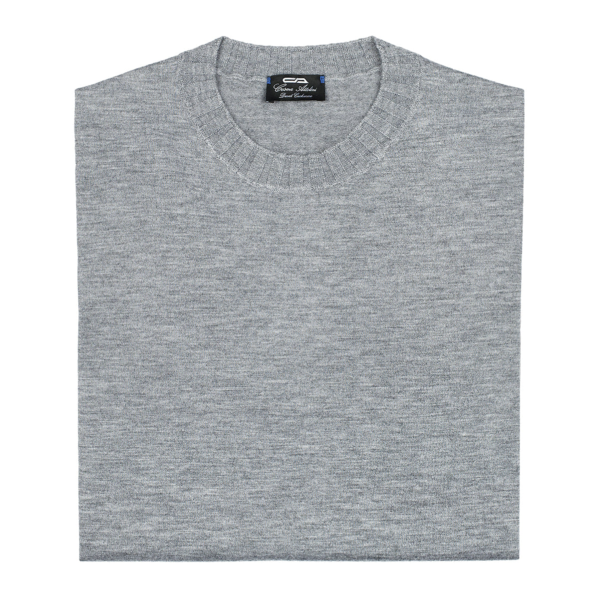 Gray Duvet cashmere crewneck with ribbed neck, cuffs and flounce. This garment is made in our artisan workshop on the shores of Lake Trasimeno. The precious pure worsted cashmere yarn and the exclusive Duvet processing make our garment unique, soft and comfortable, it is ideal for a leisure look, ensuring comfort and practicality.