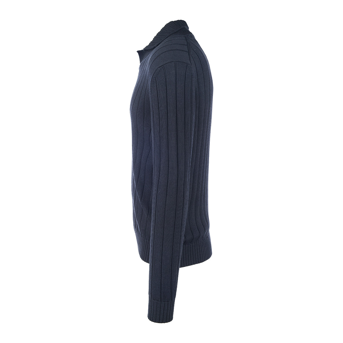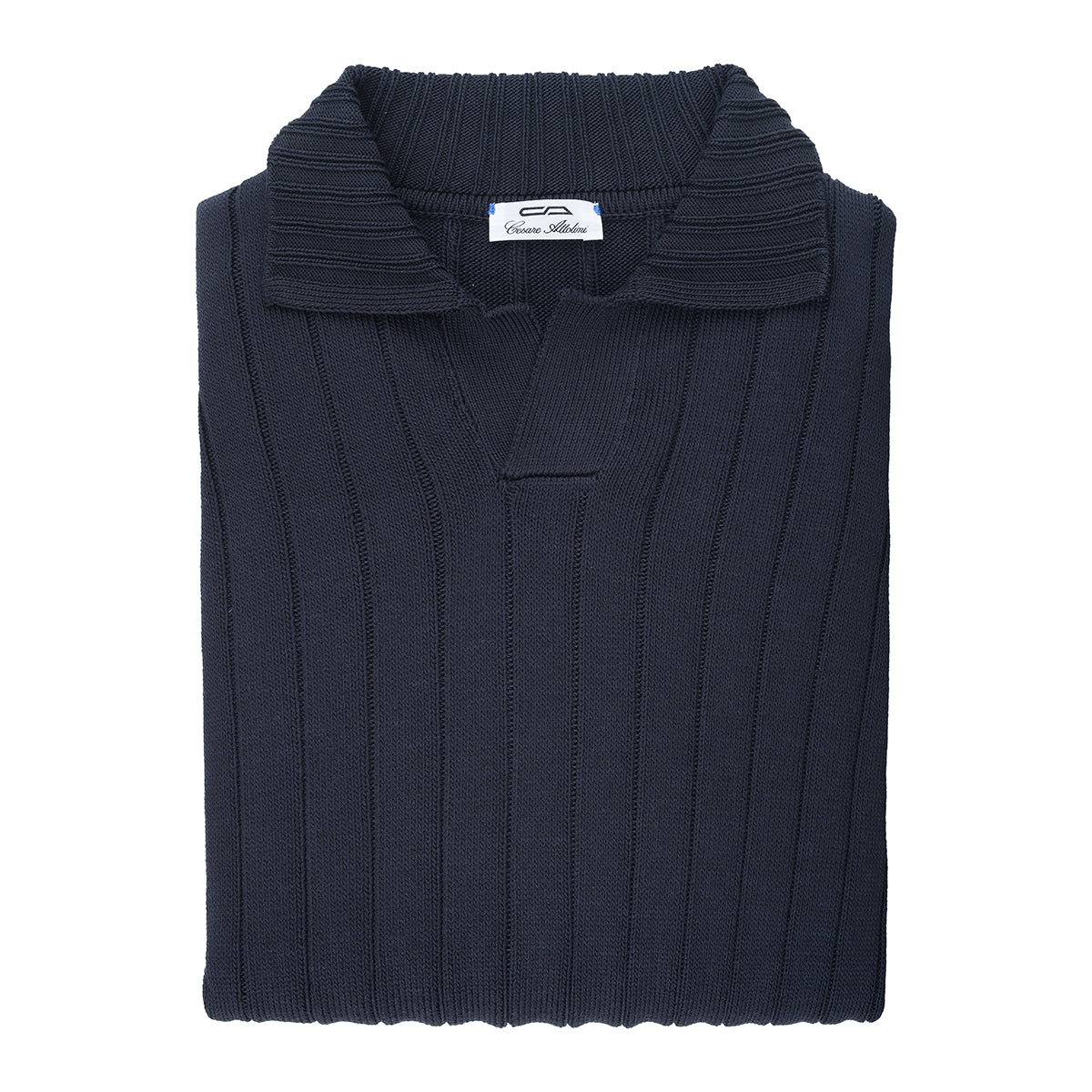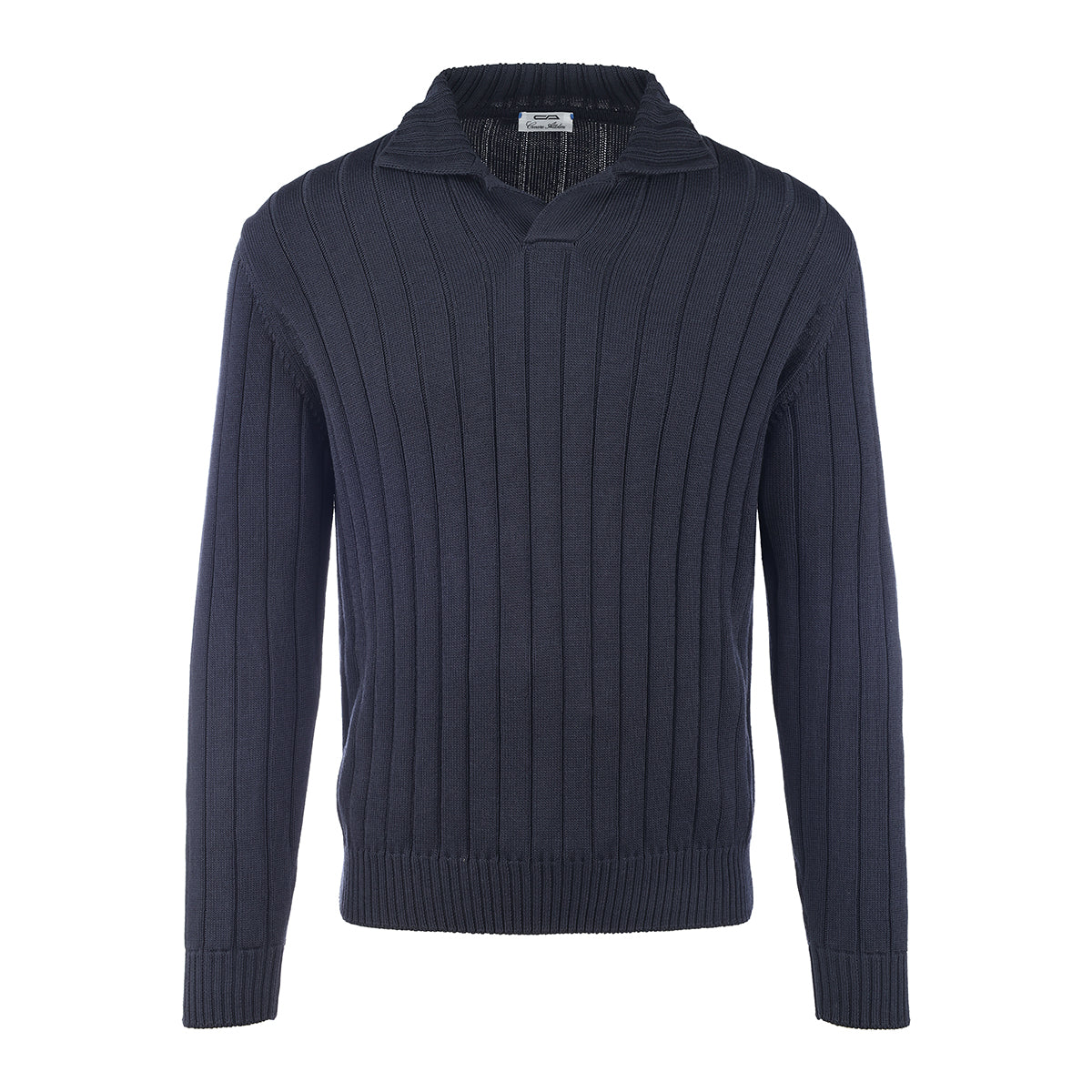 Polo, 8-gauge, crafted from a fine blend of silk and cotton, characterized by an elegant deep blue color. The knitted texture adds richness and depth to the garment. The refined design and essential structure make it perfect for a sophisticated and versatile look. This garment is made in our artisanal workshop on the shores of Lake Trasimeno.