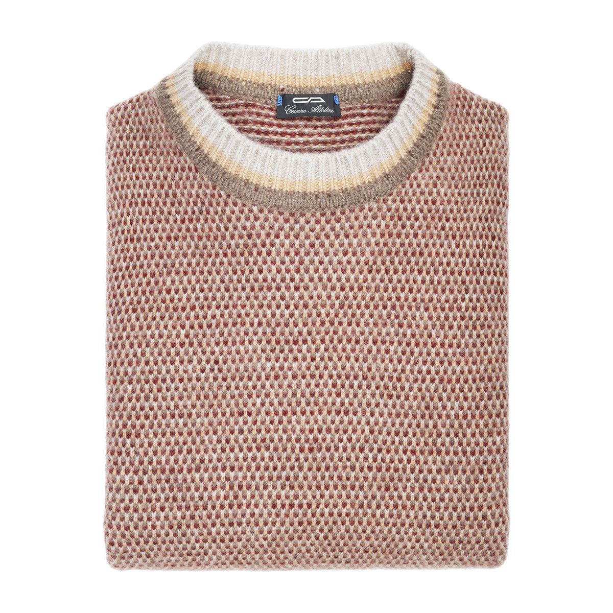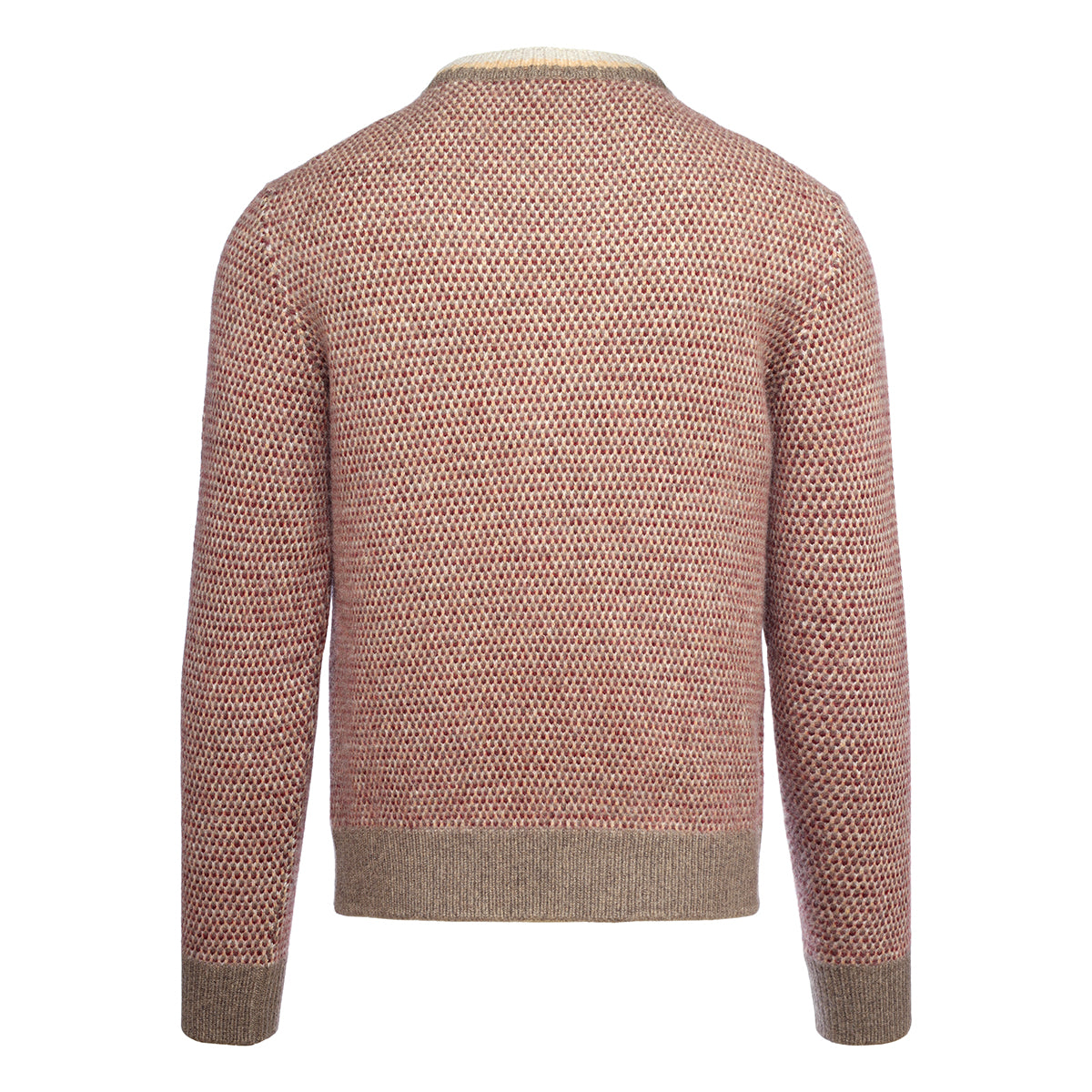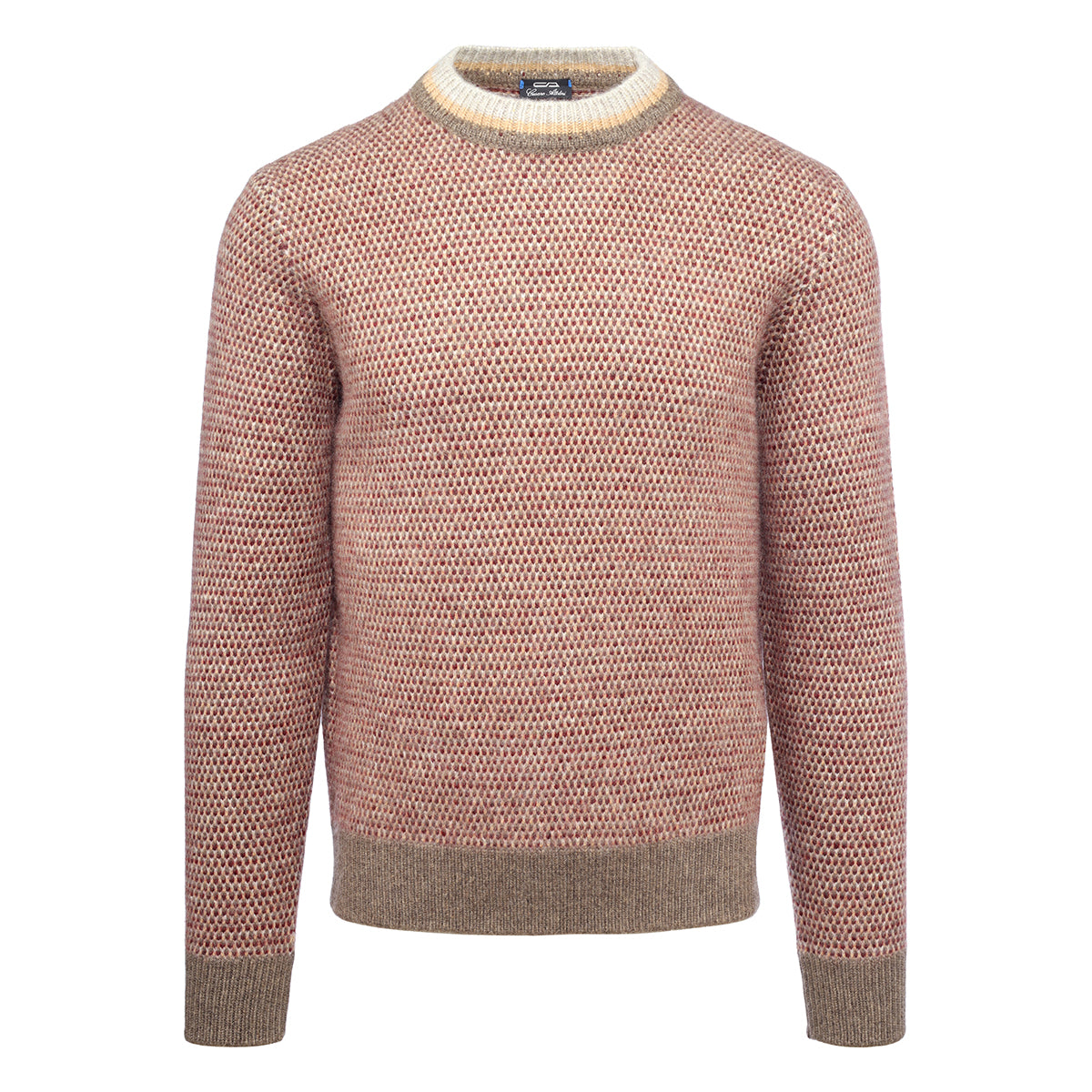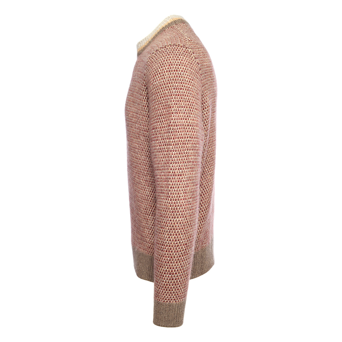 Jacquard crewneck in 4 colors of brown cashmere with collar, cuffs and bottom with flounces. This garment is made in our artisan workshop on the shores of Lake Trasimeno. The precious pure cashmere yarn makes our garment unique, soft and comfortable. It is ideal for a leisure look ensuring comfort and practicality.