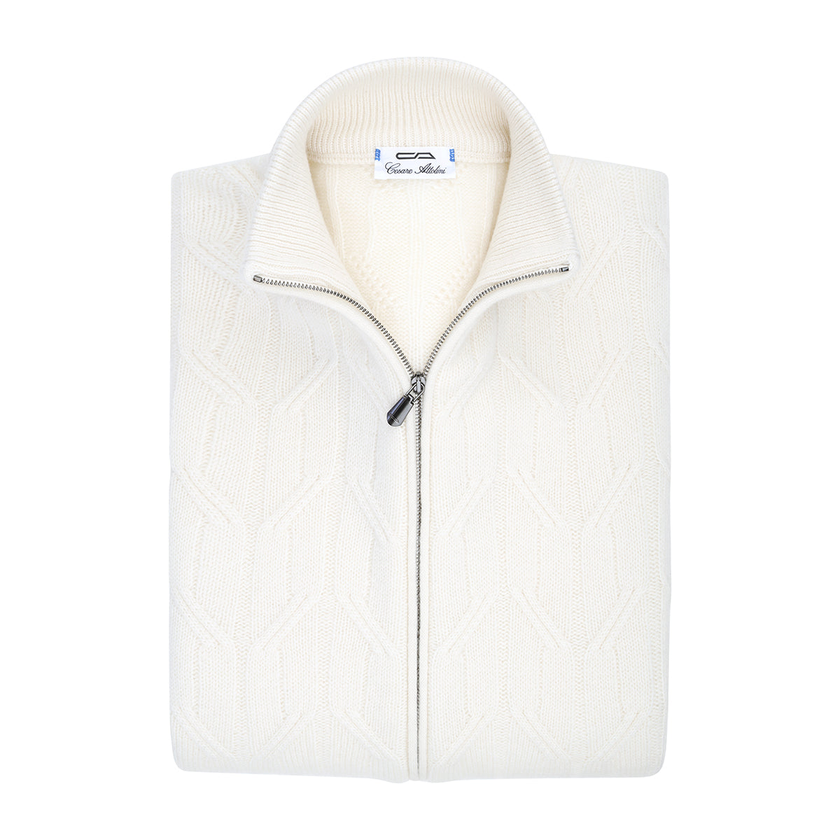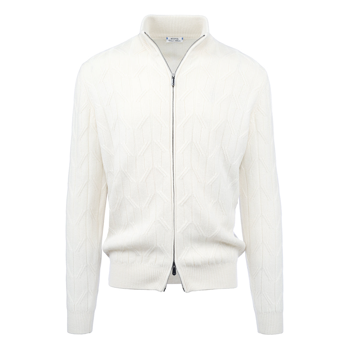 Bomber with zip and double slider in cashmere with hand-made design. This garment is made in our artisan workshop on the shores of Lake Trasimeno. The precious cashmere yarn makes our garment unique, soft and comfortable. It is ideal for a leisure look ensuring comfort and practicality.