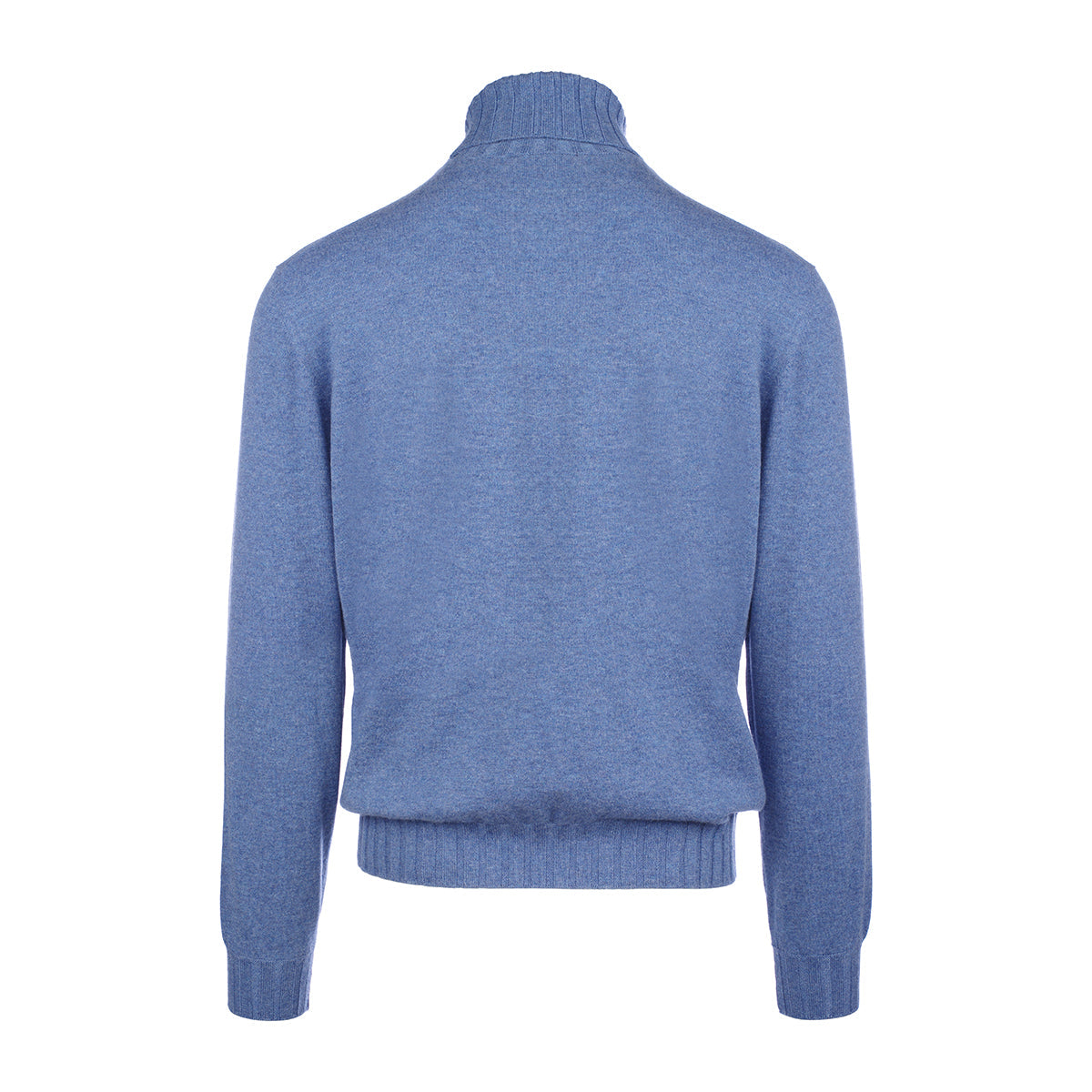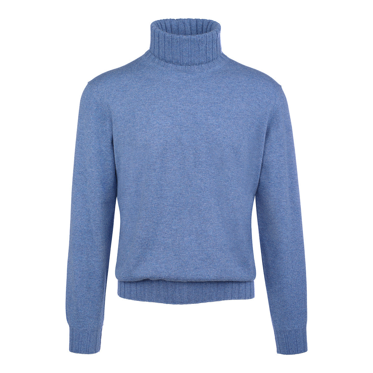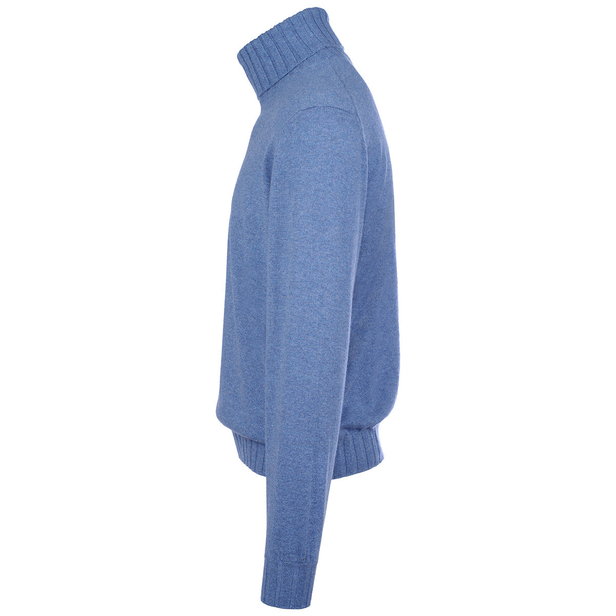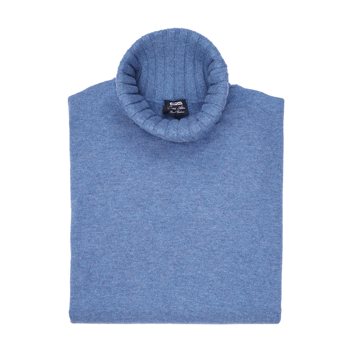 Avion cashmere duvet high collar with ribbed neck, cuffs and flounce. Made in our artisan workshop on the shores of Lake Trasimeno. The precious pure cashmere yarn and the exclusive Duvet processing make it unique.