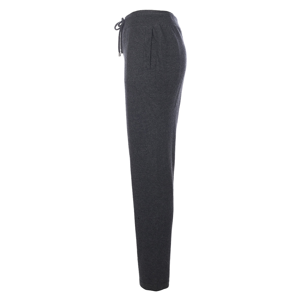 Jogging-style trousers in pure cashmere in anthracite grey. Features 2 side pockets and tubular bottom. This garment is made in our artisan workshop on the shores of Lake Trasimeno. The precious pure combed cashmere yarn and the exclusive Duvet manufacturing make our garment unique, soft and comfortable. It is ideal for a leisure look and for moments of relaxation.