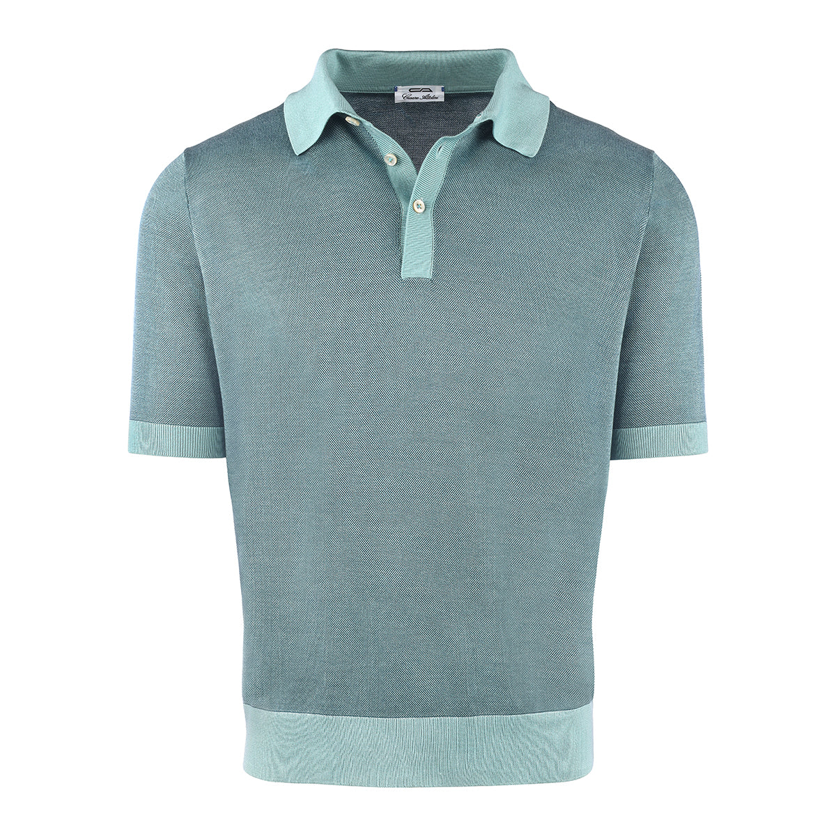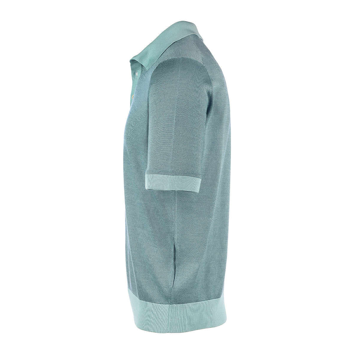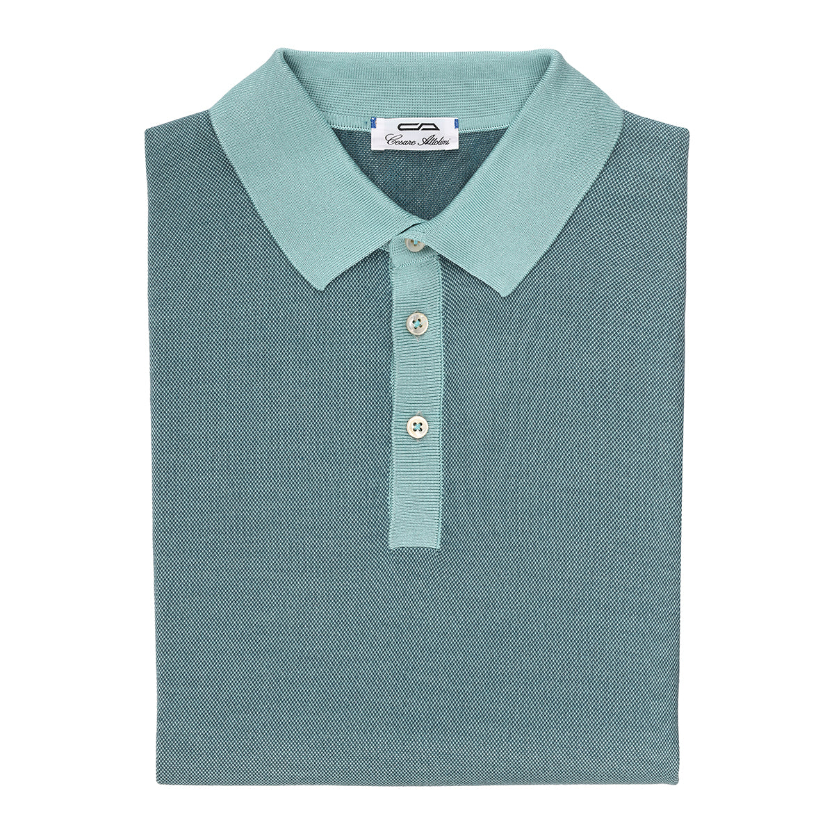 Polo shirt with buttons, crafted from Jacquard Oxford silk, featuring an elegant blue enhanced by the collar, button placket, and sleeve edges in a more delicate contrasting shade. The Oxford weave highlights the fabric’s texture, ensuring comfort and style for any occasion. This garment is made in our artisanal workshop on the shores of Lake Trasimeno.