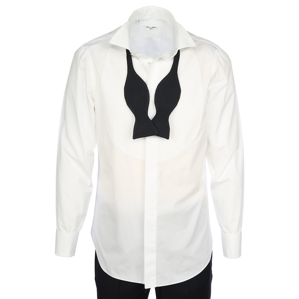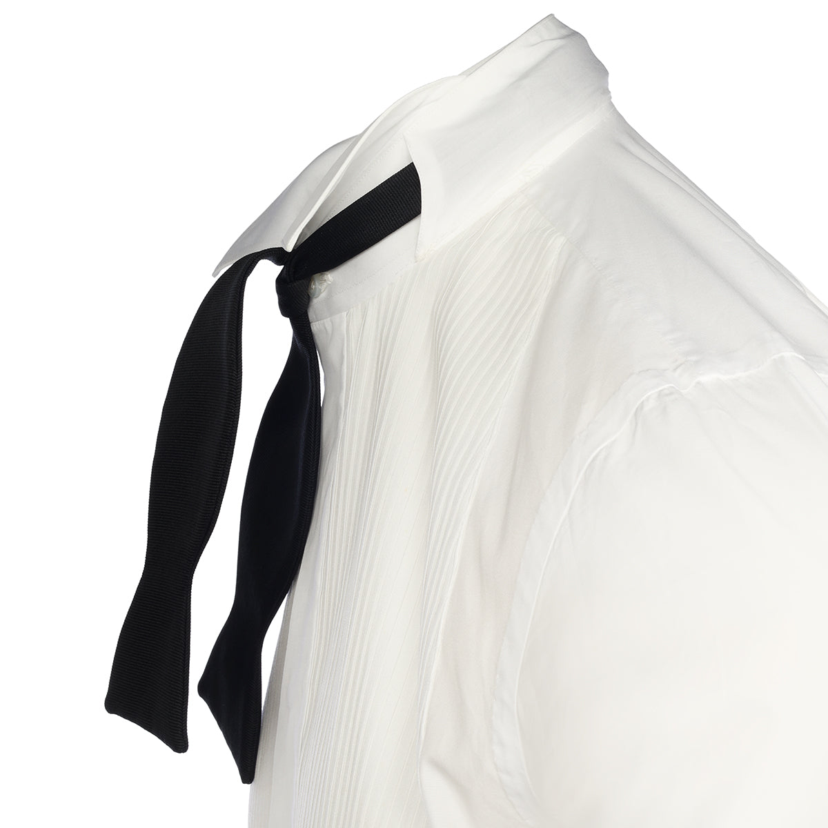 Blue silk knotted bow tie with latch closure. Entirely cut and sewn by hand by our master-tailors. This elegant accessory is ideal for tuxedos.