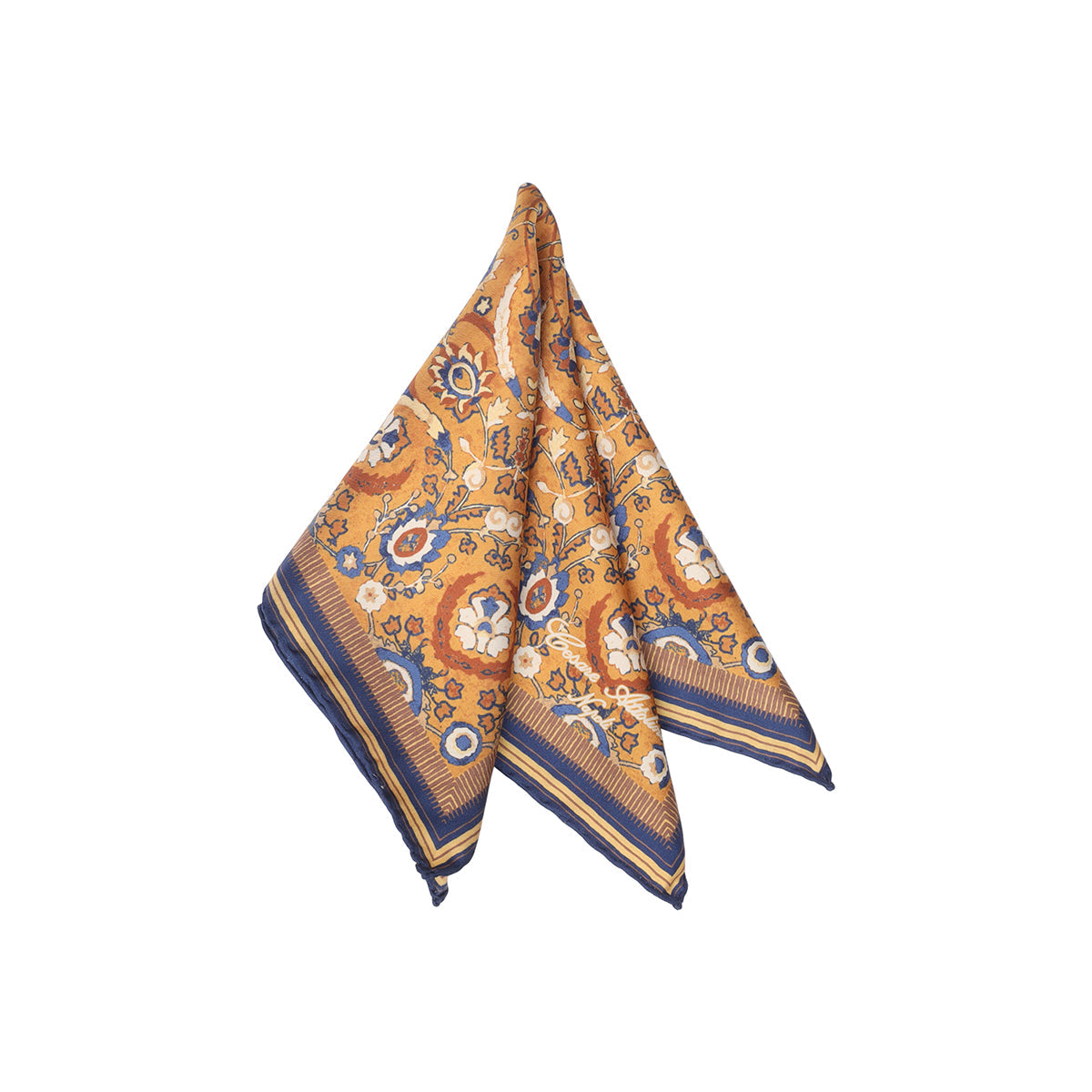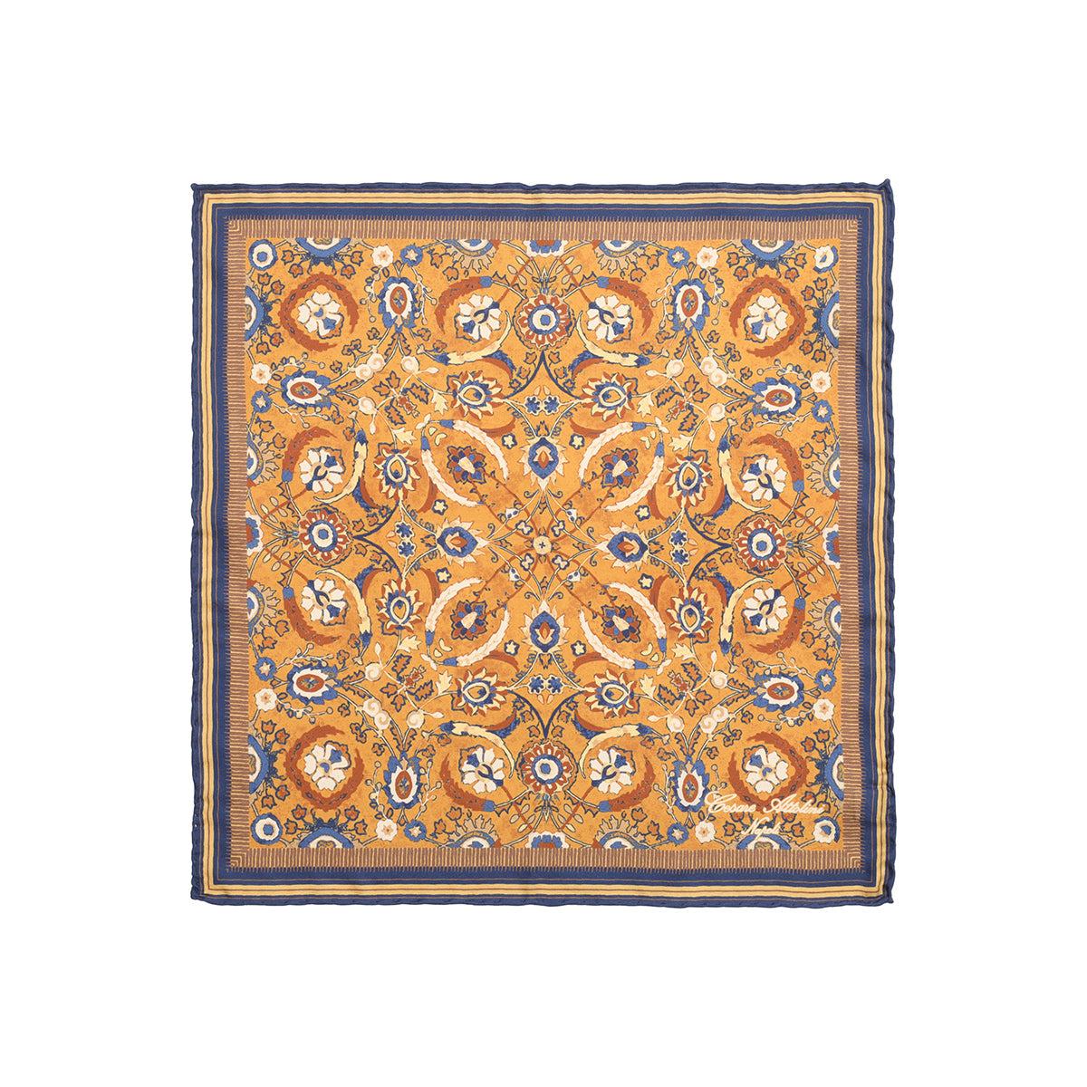 The Cesare Attolini pochette is a totally handmade product, from the single cut of the fabric to the manufacturing. This pochette with handmade hem in silk twill yellow background Pompeian floral design with blue contrast border with Cesare Attolini Napoli logo in white contrast, is perfect to complete your looks with a touch of style and refinement.