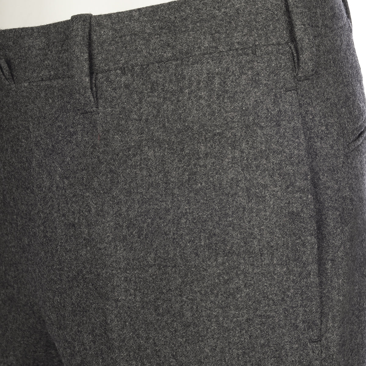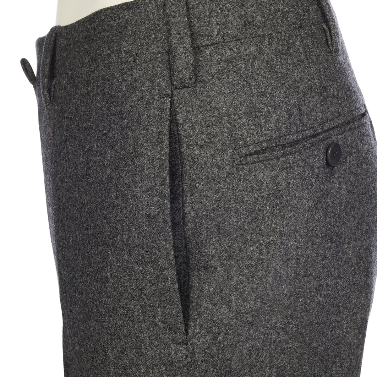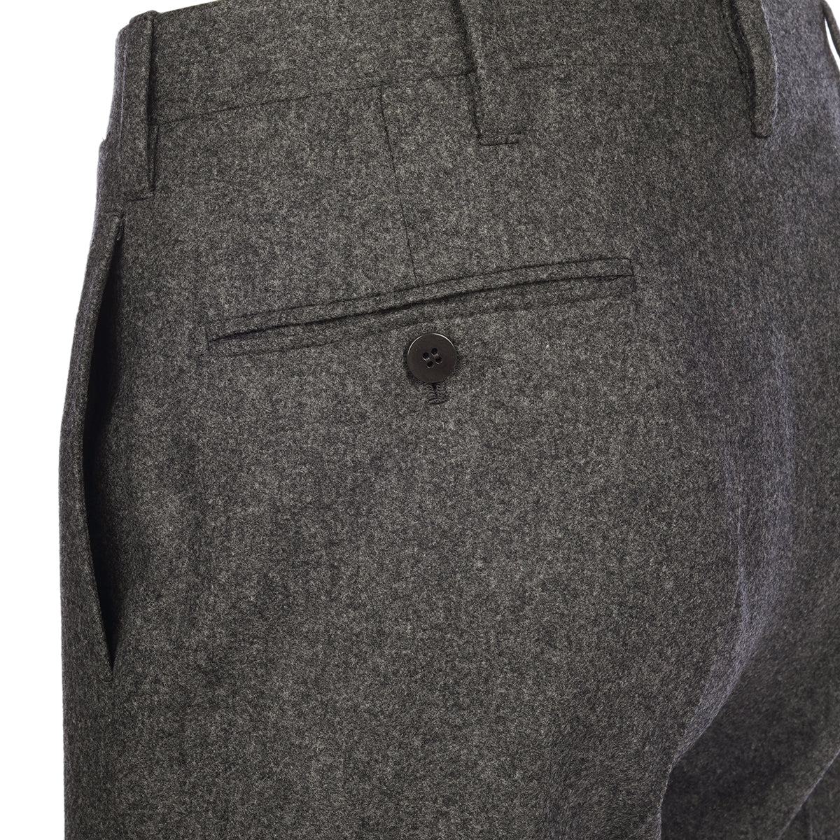 Plain medium gray pleated wool pants. Seam pockets, buttons and waistband , one front pocket and two back pockets. Entirely cut and hand-sewn in Casalnuovo, by our master craftsmen. This garment is ideal for completing both formal and leisure outfits with style and elegance.