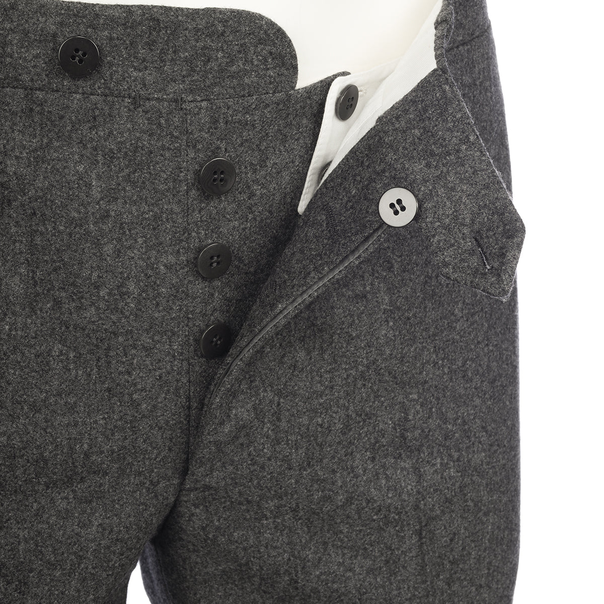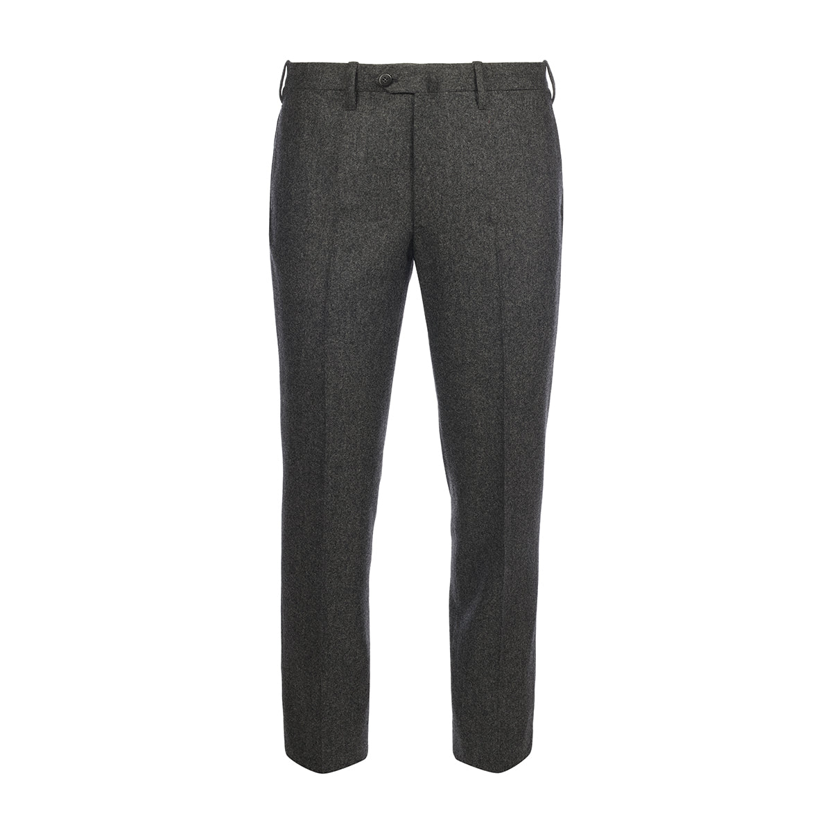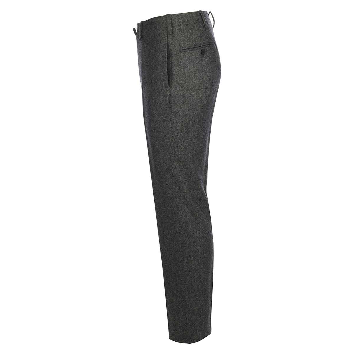 Plain medium gray pleated wool pants. Seam pockets, buttons and waistband , one front pocket and two back pockets. Entirely cut and hand-sewn in Casalnuovo, by our master craftsmen. This garment is ideal for completing both formal and leisure outfits with style and elegance.