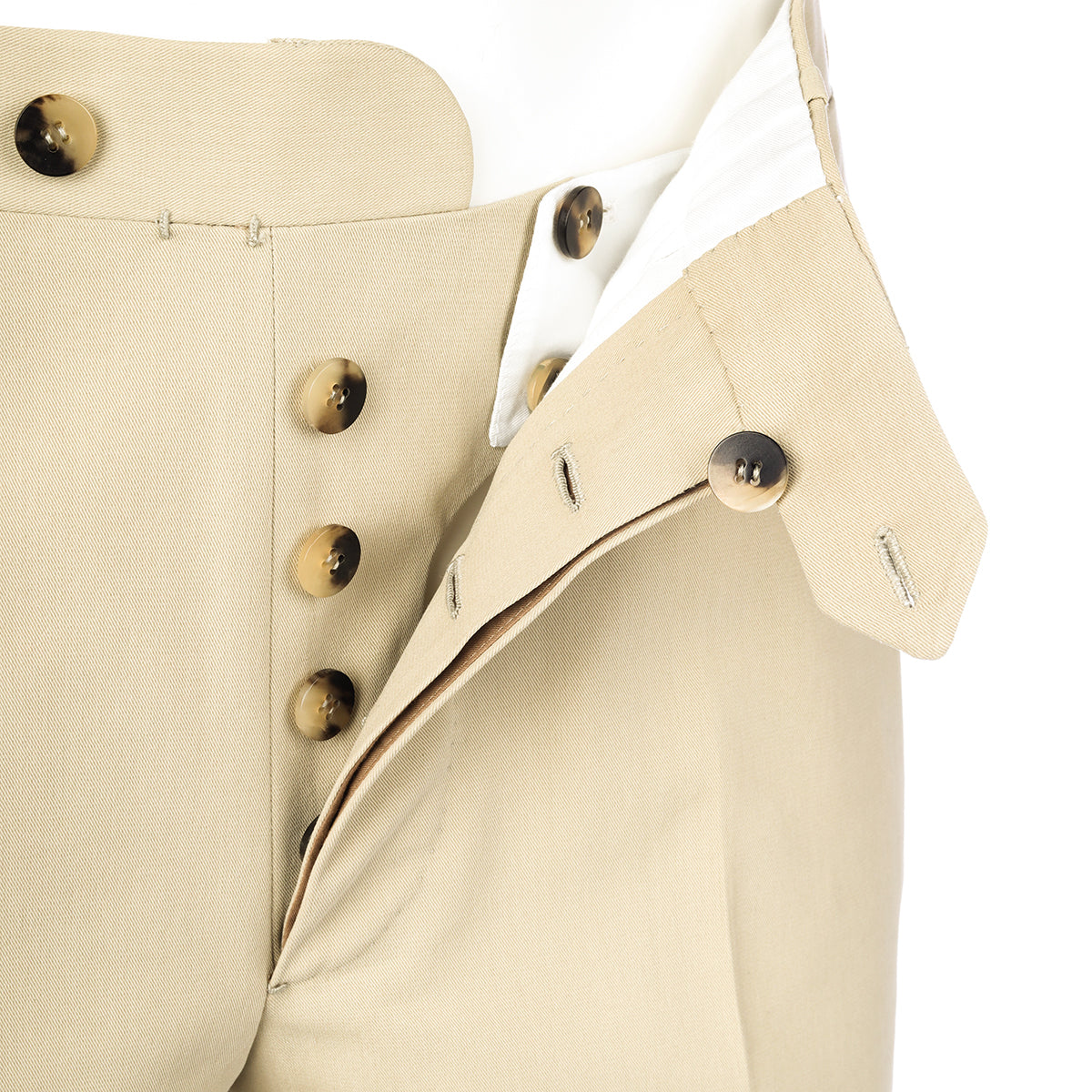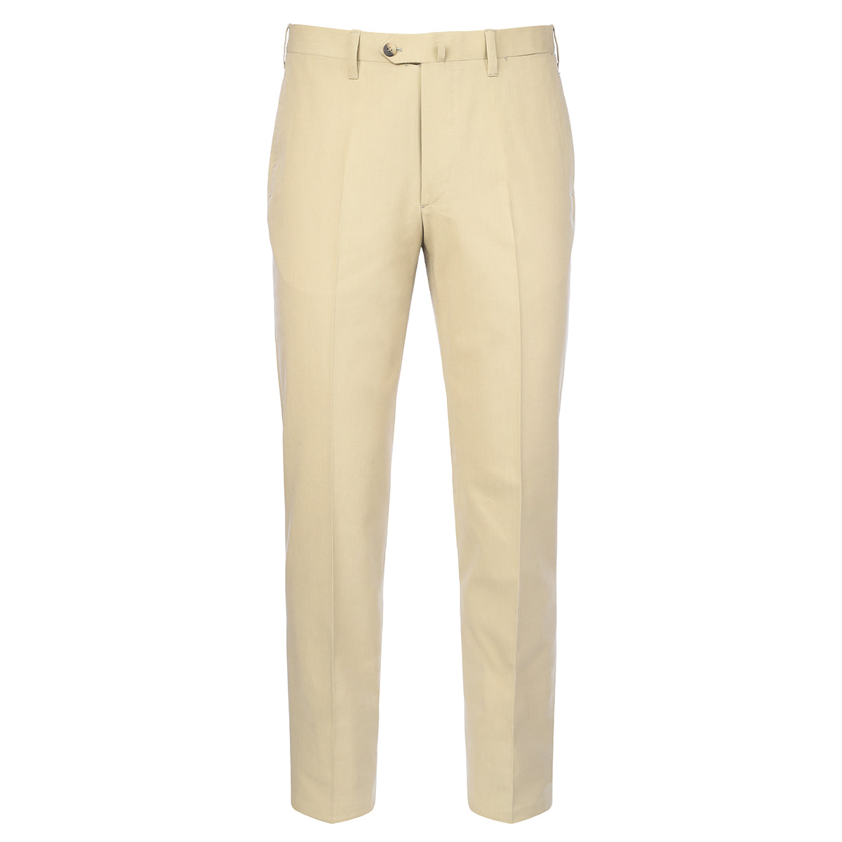 Plain beige pleated cotton pants. Stitched pockets, buttons and waistband, 1 front pocket and 2 back pockets. Entirely cut and hand-sewn in Casalnuovo, by our master craftsmen. This garment is ideal for completing a casual look with attention to detail and which can stand out for its class and refinement.