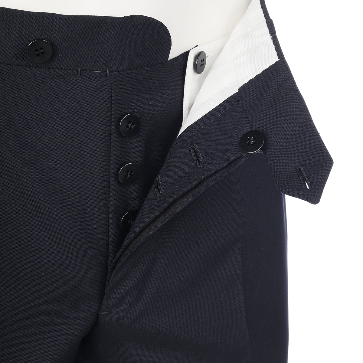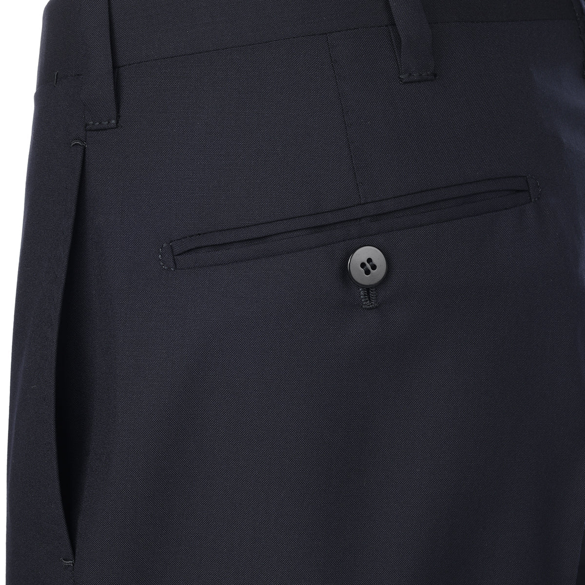 Pants in blue wool canvas. Seam pockets, buttons and waistband, one pocket on the front and two back pockets. Entirely cut and hand-sewn in Casalnuovo, by our master craftsmen. This garment is ideal for completing a formal and occasional outfit with style and elegance.