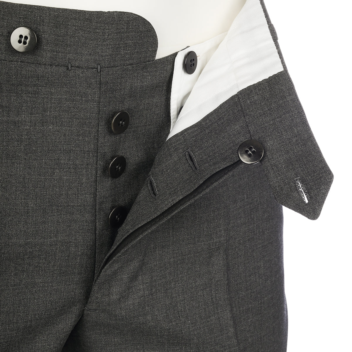 Pants in medium gray wool canvas. Seam pockets, buttons and waistband, one pocket on the front and two back pockets. Entirely cut and hand-sewn in Casalnuovo, by our master craftsmen. This garment is ideal for completing a formal and occasional outfit with style and elegance.
