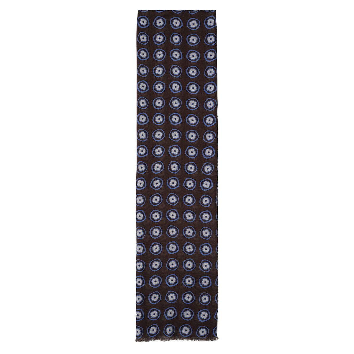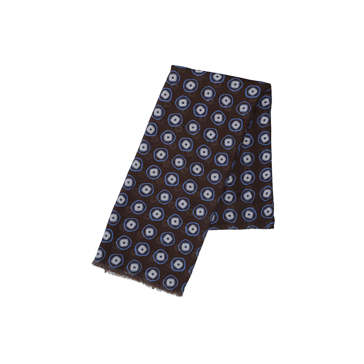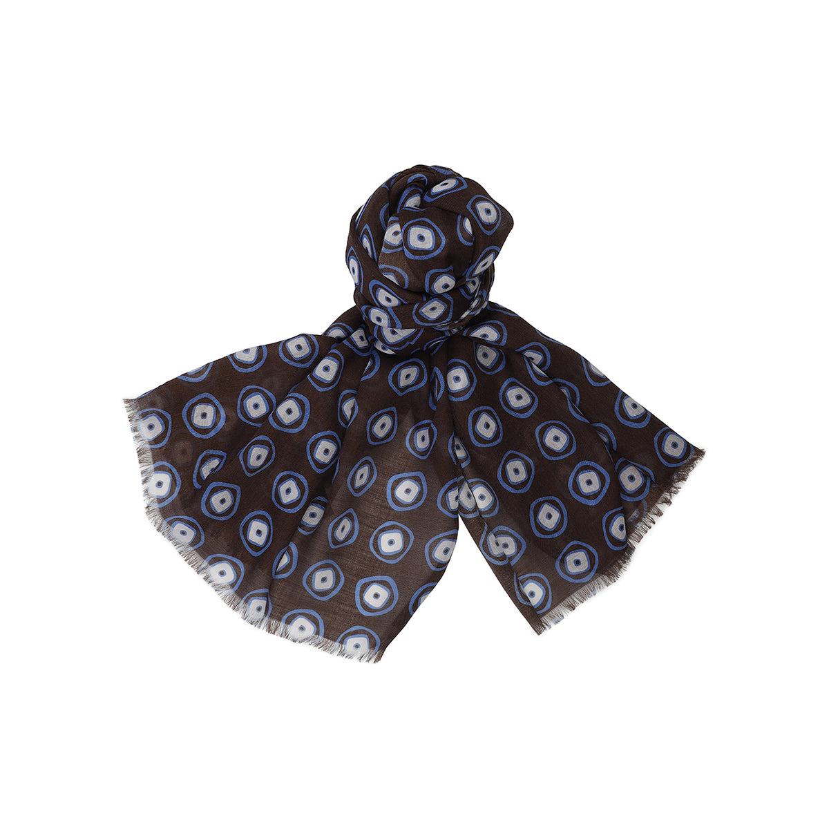 The voile cotton scarf is an accessory that combines the refinement of designs with original color combinations. This scarf is a perfect accessory to refine your look and is made with high quality fabrics. It is characterized by the elegant print with geometric design in white and light blue on a brown background a. Versatile accessory that completes formal attires and the sportiest outwear. Small fringe on the edge