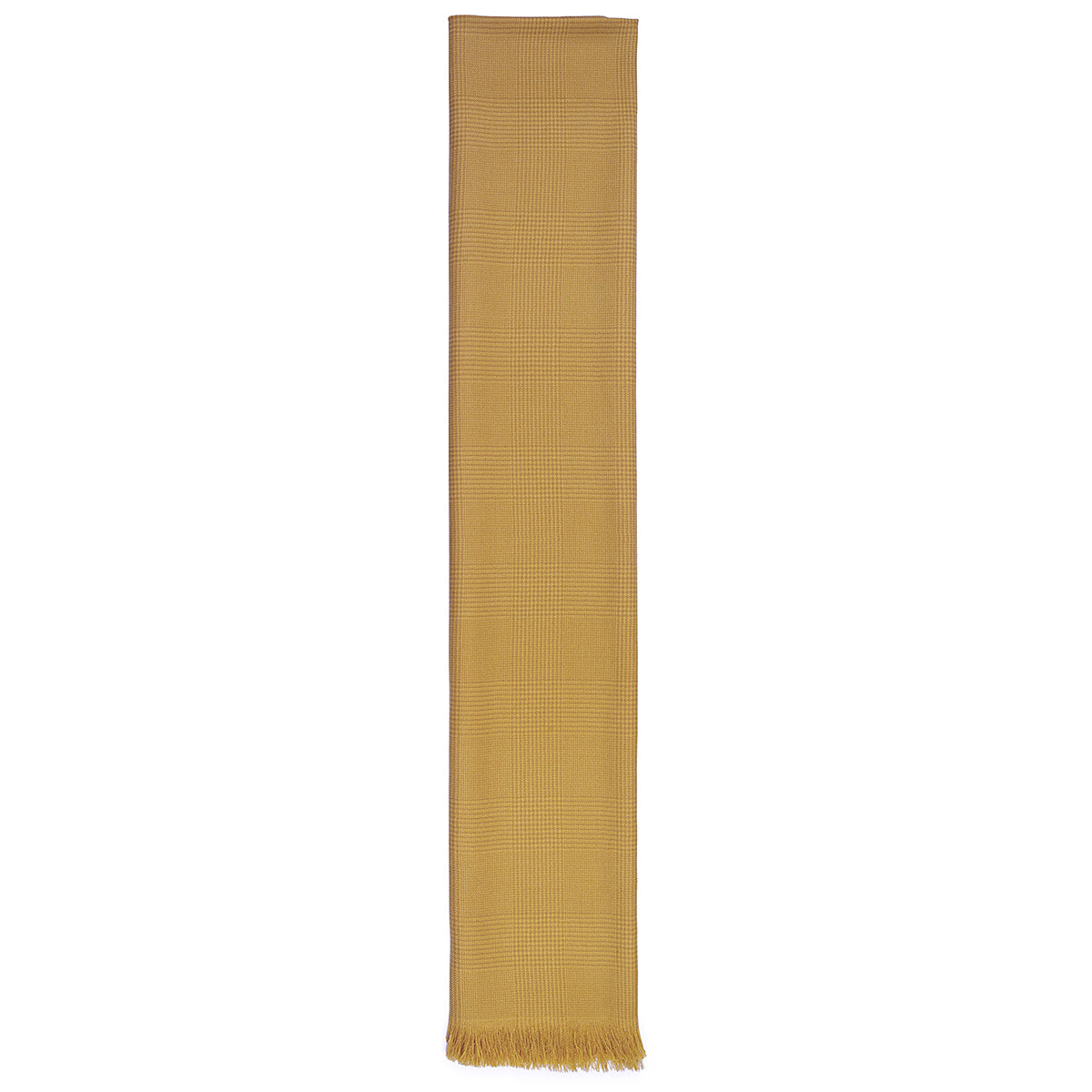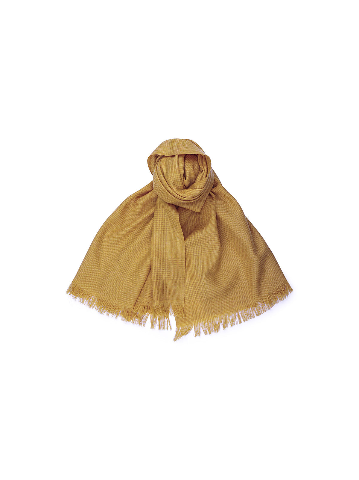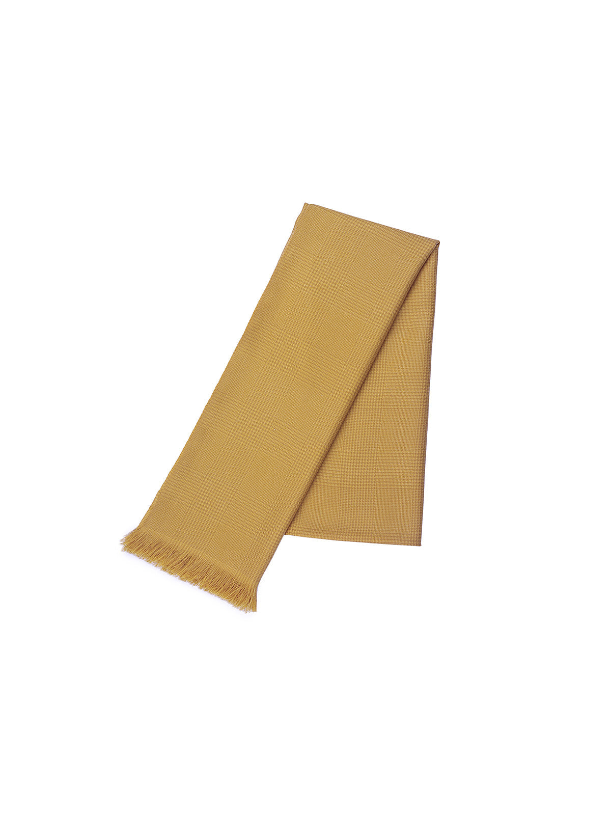 The cashmere small fringe on the edge scarf is an essential and exclusive accessory with an impalpable softness. Made with high quality fabrics, this warm and light accessory is perfect for finishing your look. It is characterized by the elegant mustard yellow Prince of Wales pattern. This accessory is perfect for those who love a sophisticated style.