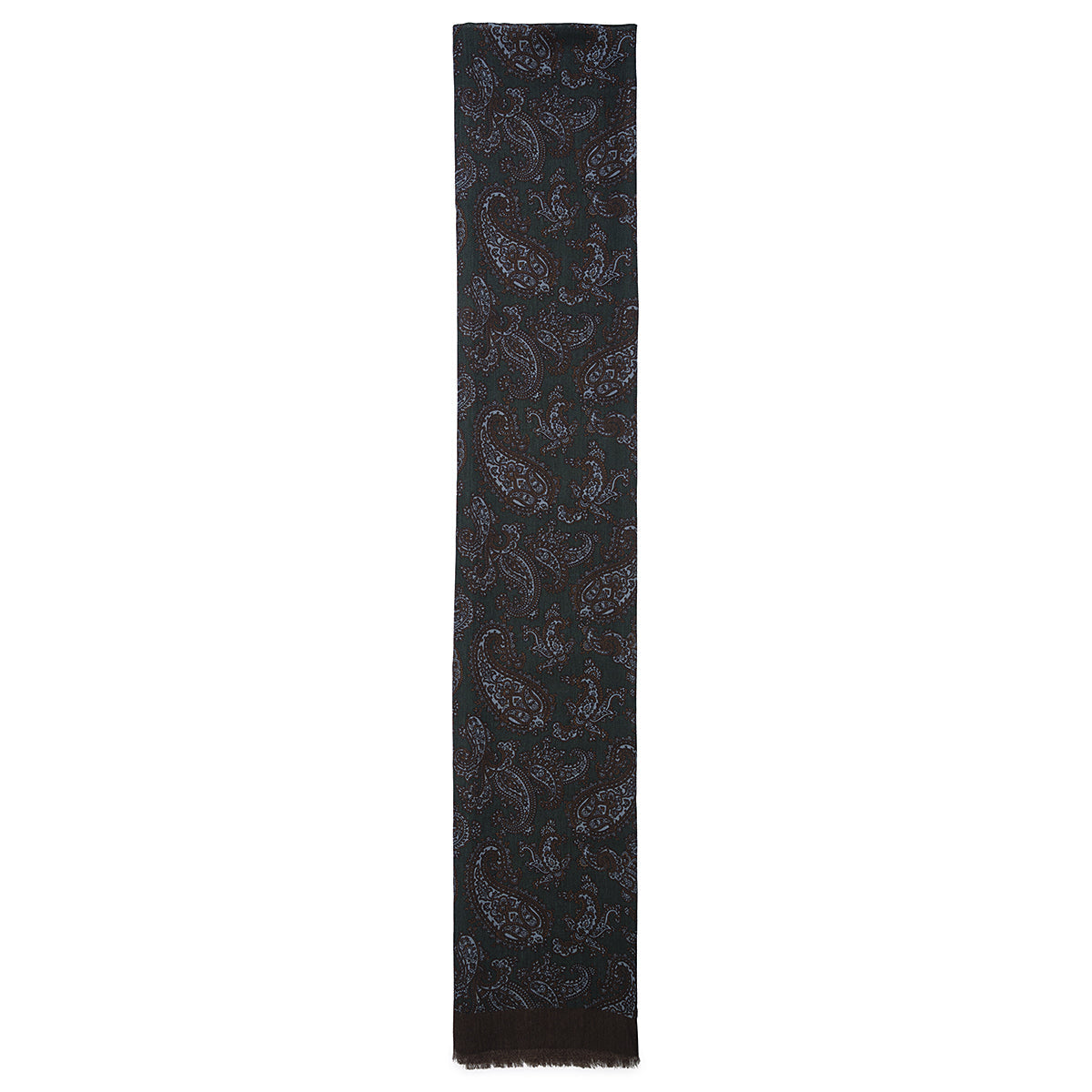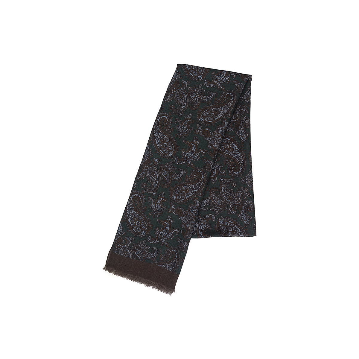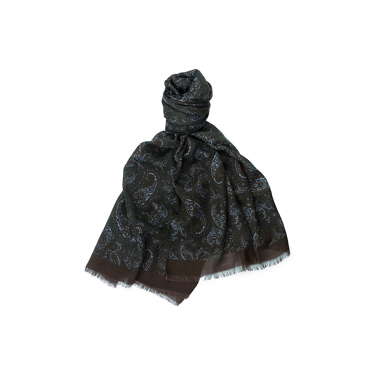 The cashmere and cotton scarf with small fringe on the edge is an accessory that combines the refinement of designs with original color combinations. Made with high quality fabrics, this scarf is a perfect accessory to refine your look. It stands out for the elegant print with cashmere design in brick and powder blue on an English green background. A versatile accessory that completes formal attires and the sportiest outwear.