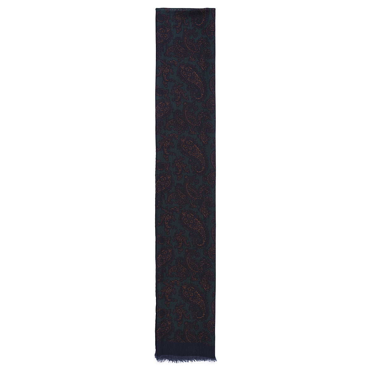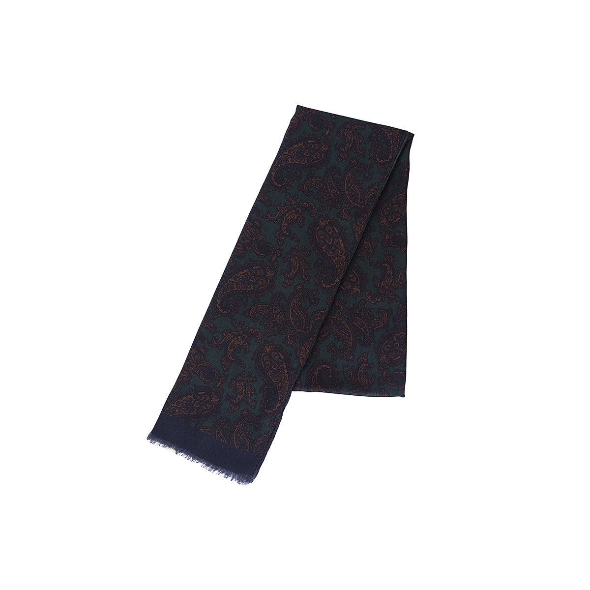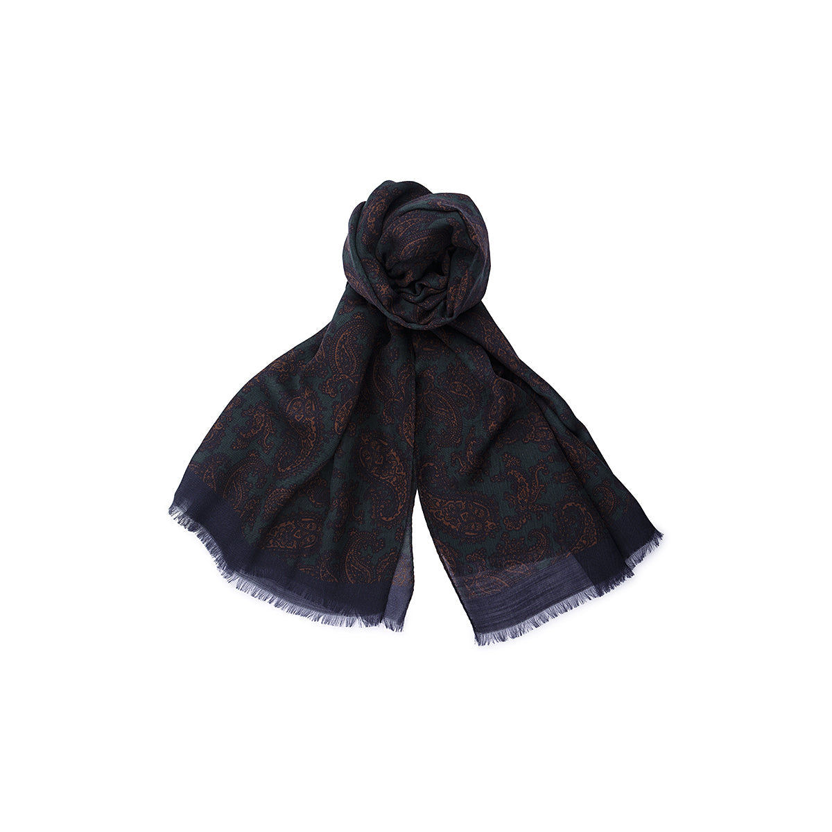 The cashmere and cotton with small fringe on the edge scarf is an accessory that combines the refinement of designs with original color combinations. Made with high quality fabrics, This scarf is a perfect accessory to refine your look. It is characterized by the elegant print with cashmere design in brown and anthracite gray on an English green background. Versatile accessory that completes formal attires and the sportiest outwear.