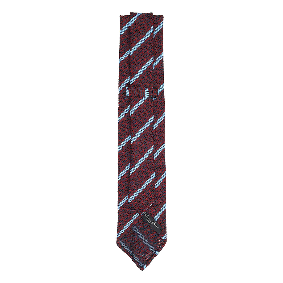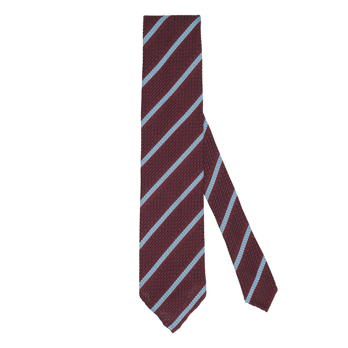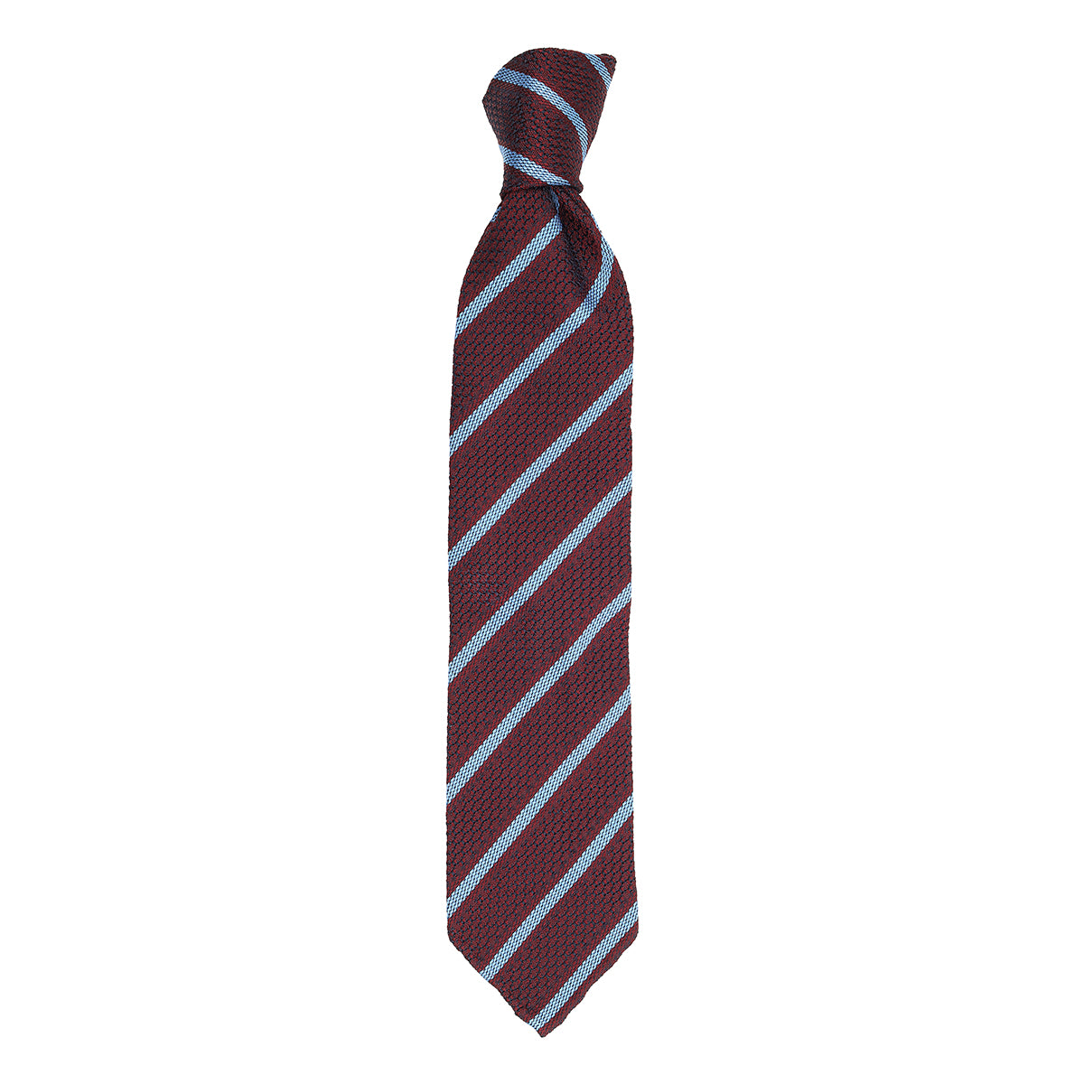8.5 cm wide tie with a burgundy background and light blue stripe