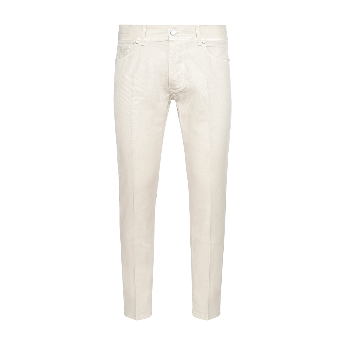 5-pocket trousers in beige cotton and elastane canvas. This versatile garment is perfect for creating numerous casual and trendy outfits.