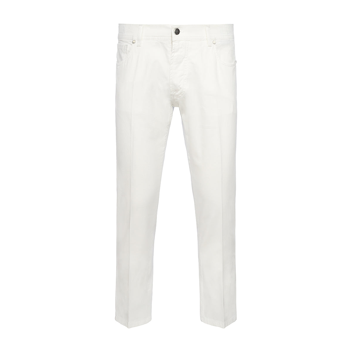 5-pocket trousers in white cotton and elastane canvas. This versatile garment is perfect for creating numerous casual and trendy outfits.