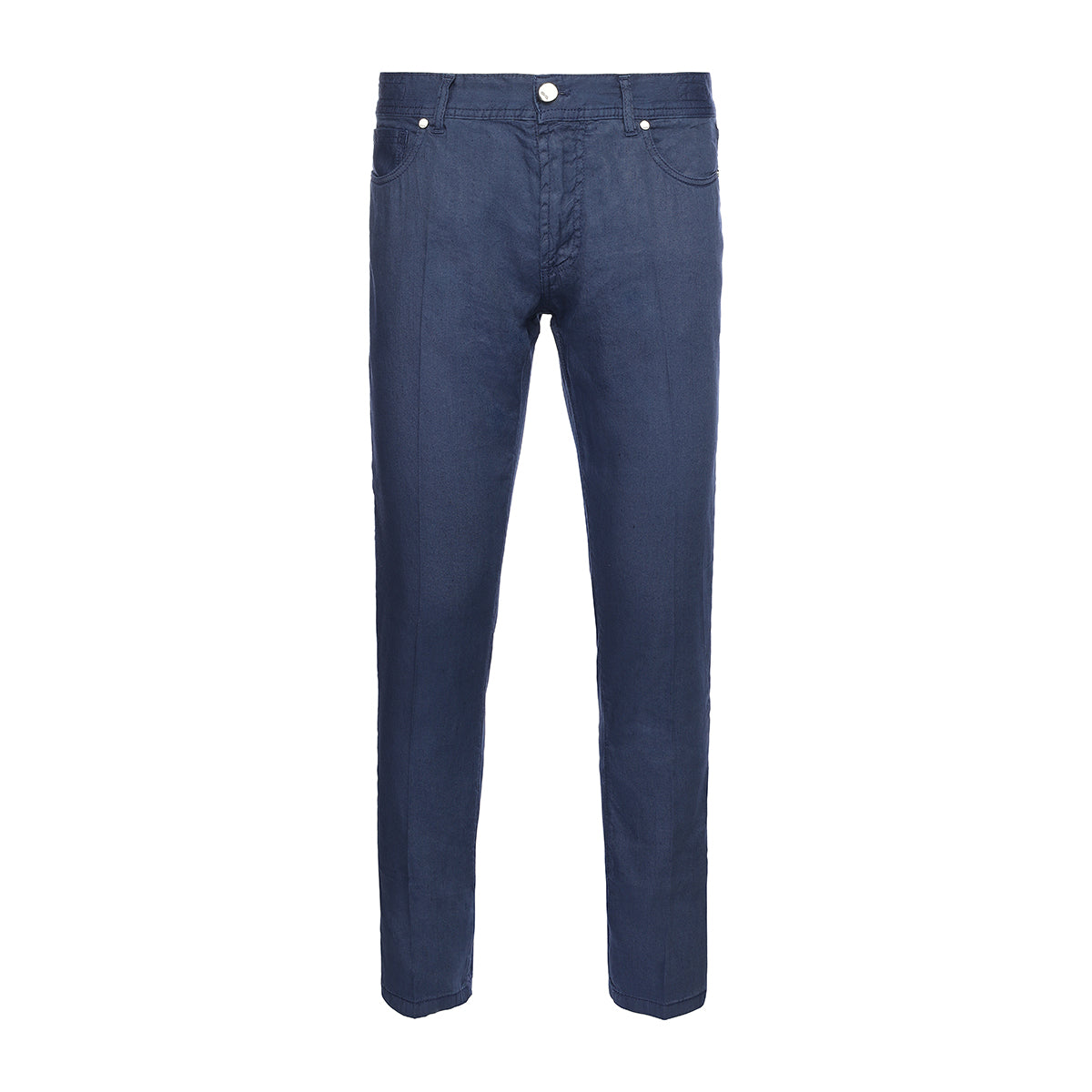 light blu 5-pocket trousers in cotton linen and elastane. This versatile garment is perfect for creating numerous casual and trendy outfits.