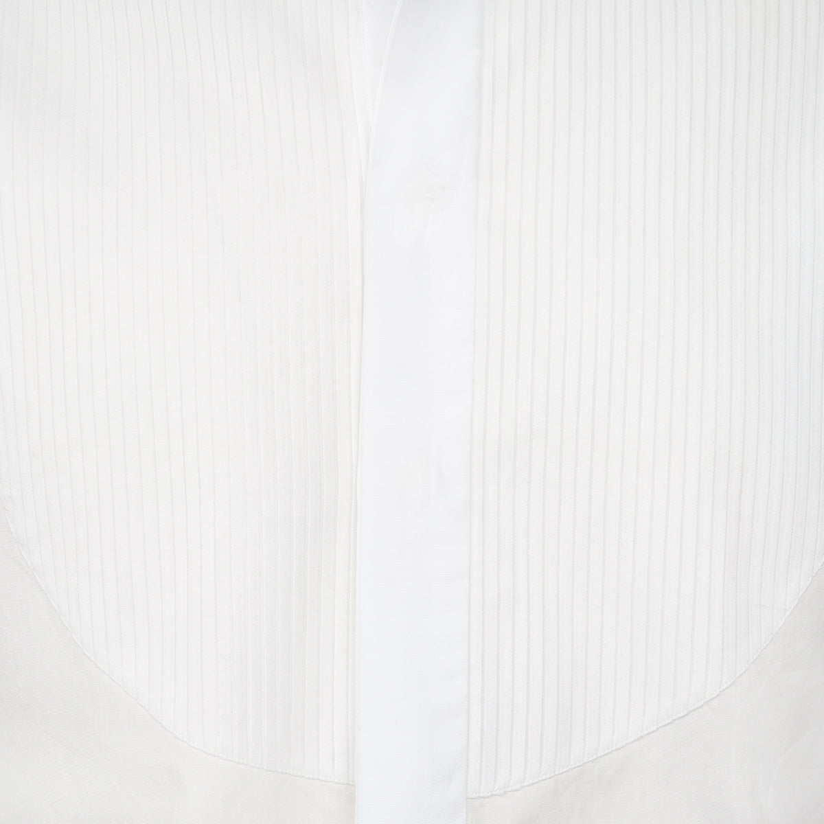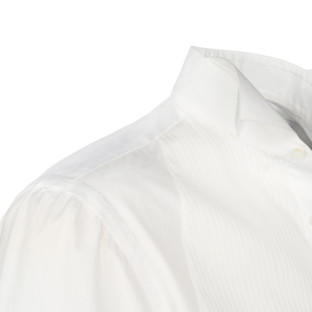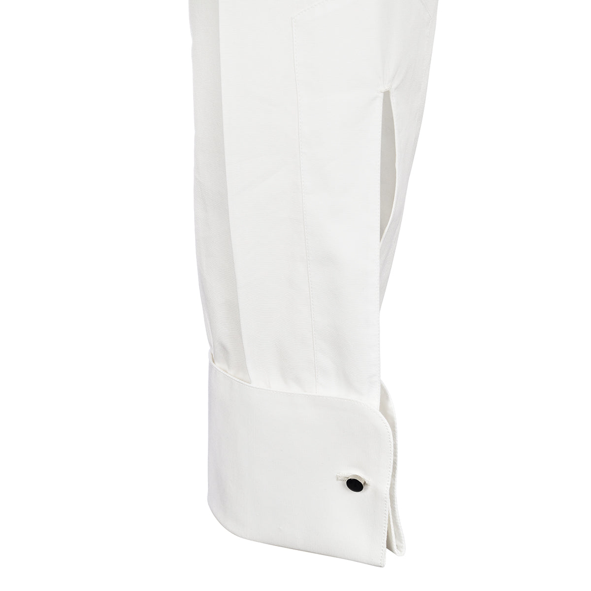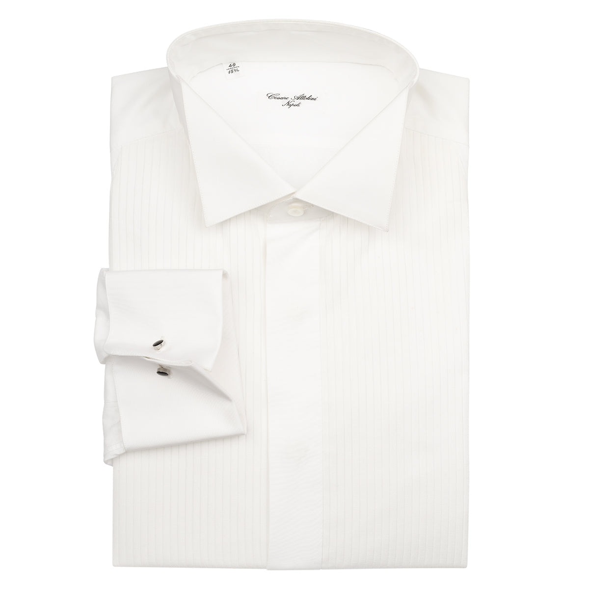 120/2 cotton shirt solid white with diplomatic collar, cufflinks and pleats. Entirely cut and sewn by hand by the skilled hands of our shirtmakers in our workshop. Made of high quality cotton. This shirt offers softness and a pleasant feeling of lightness on the skin. To be worn on important occasions.