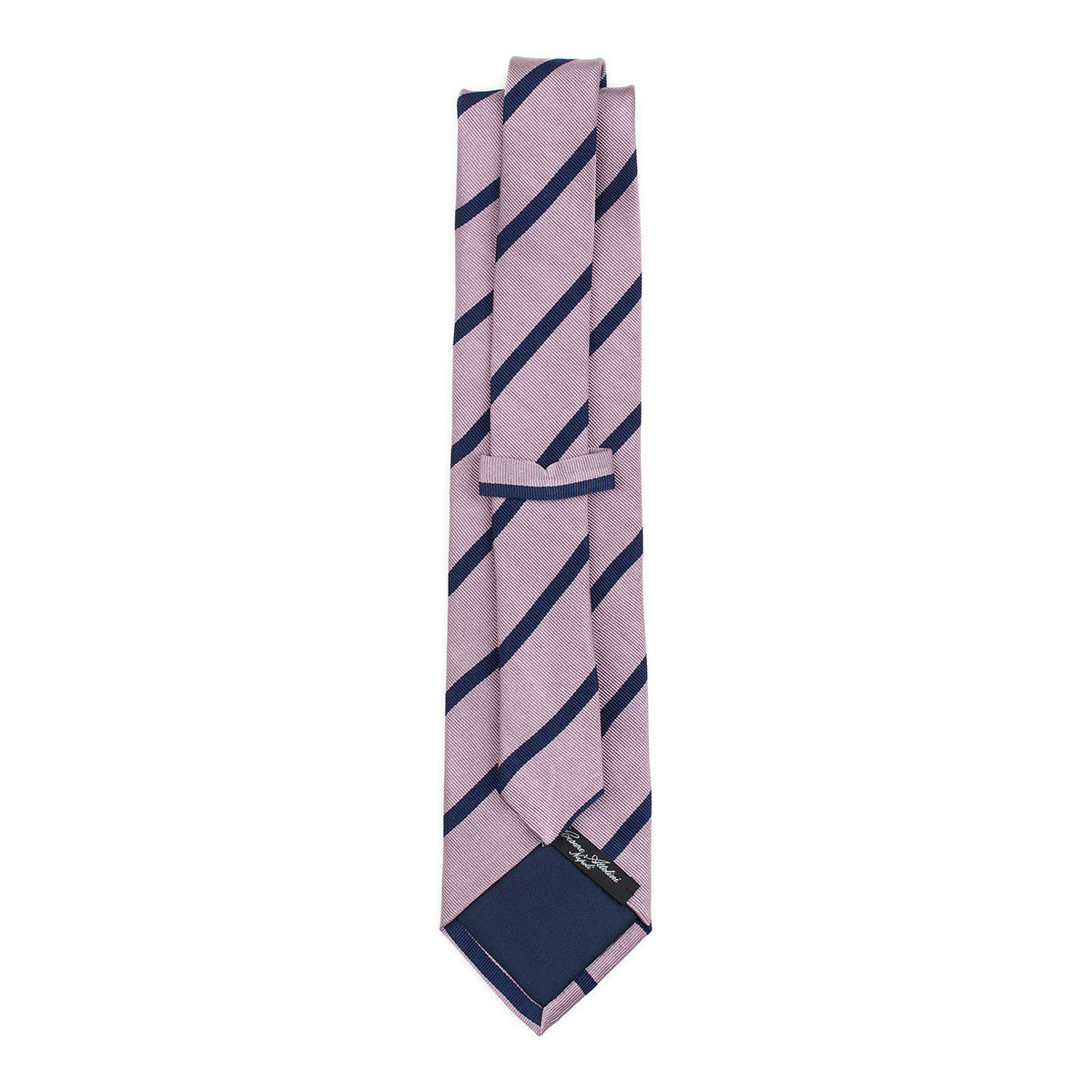 8.5cm width tie. Pink with blue stripes.