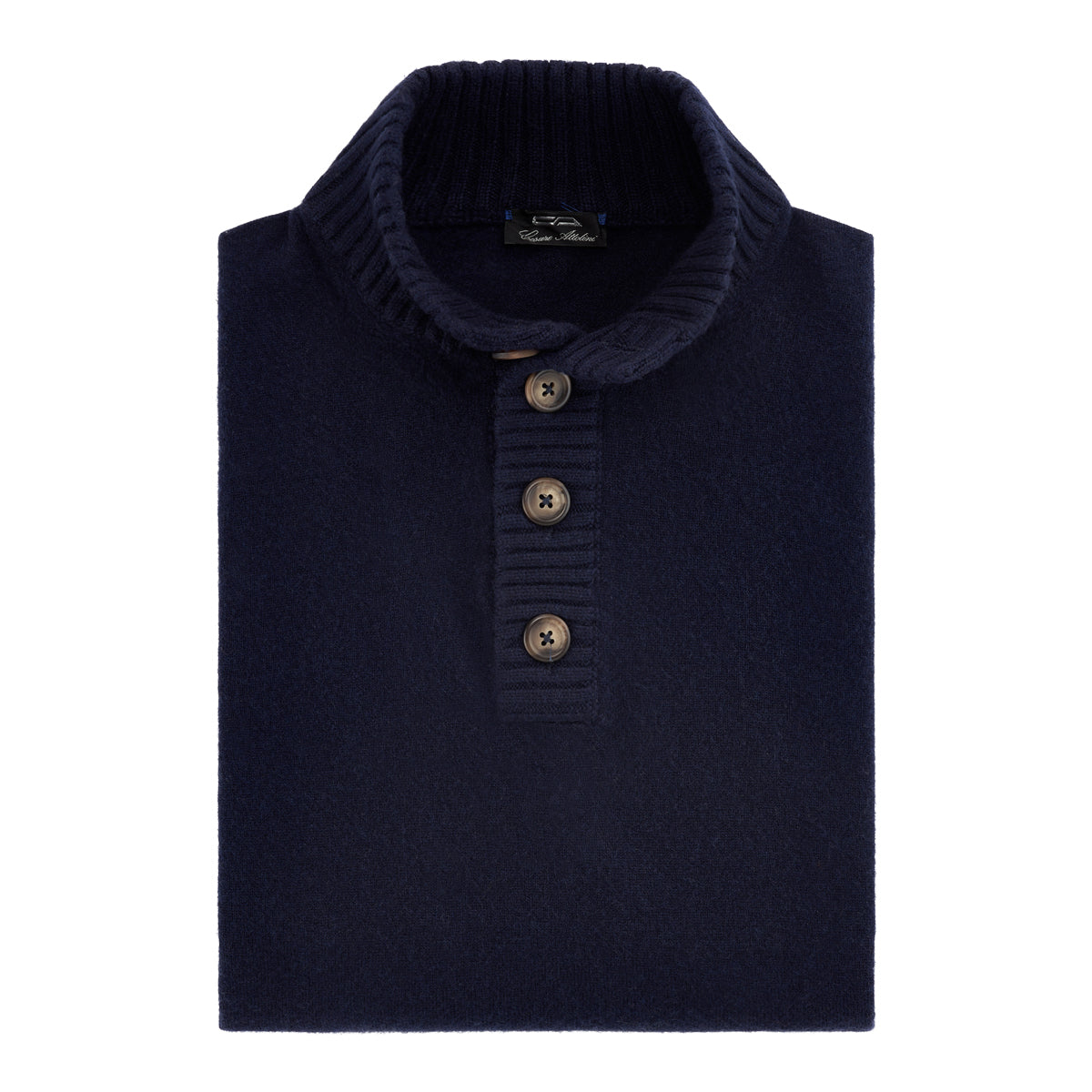 Navy duvet cashmere Serafina with four buttons. Ribbed neckline, cuffs and hemline.