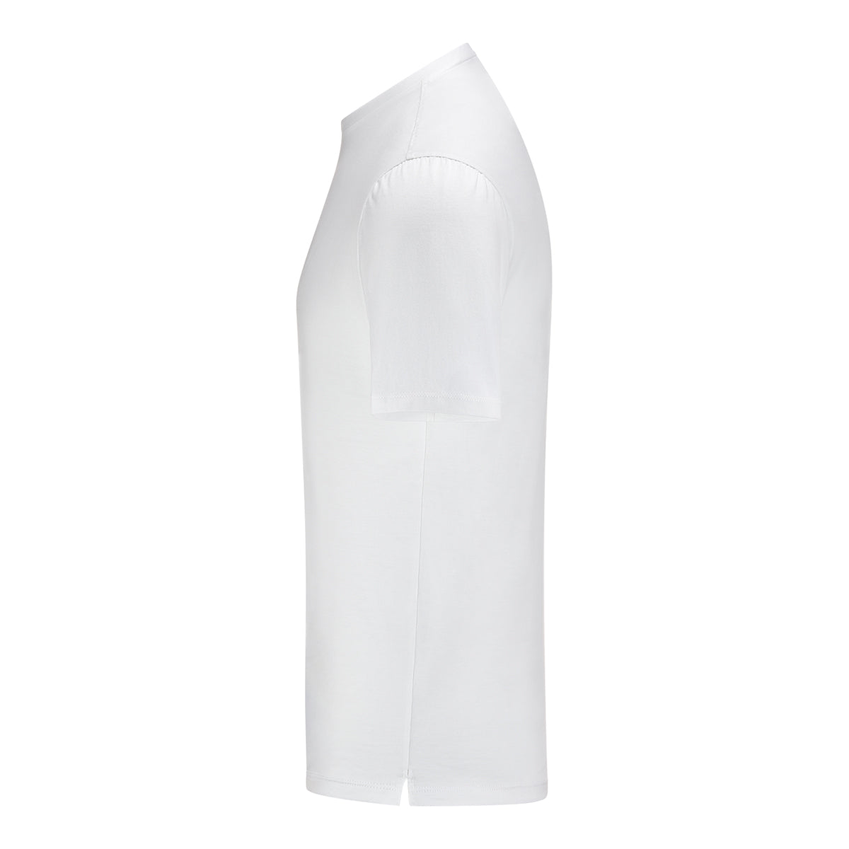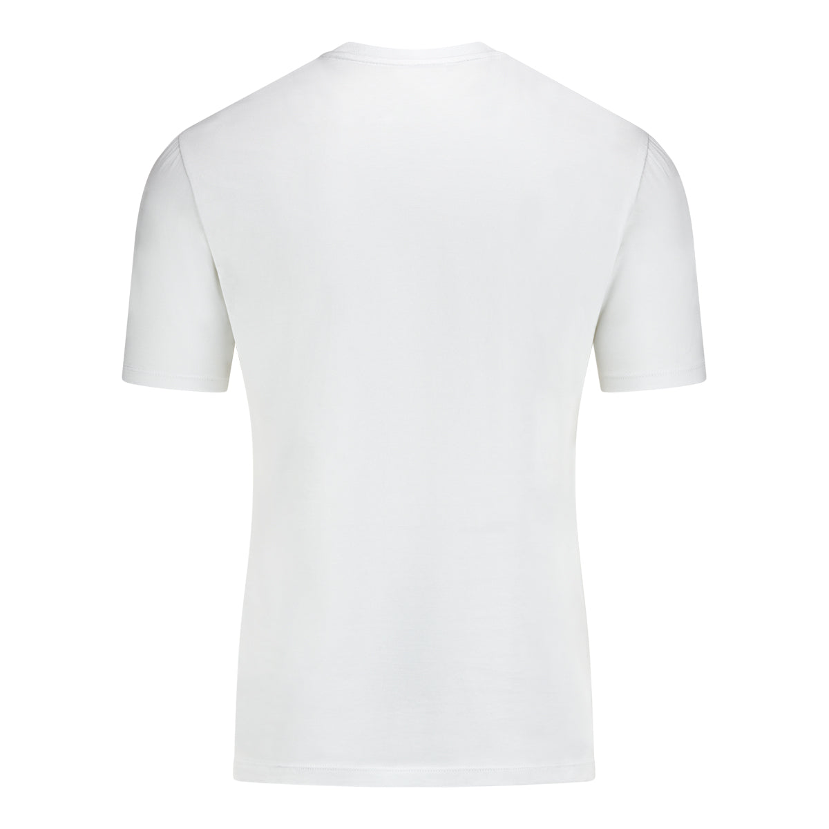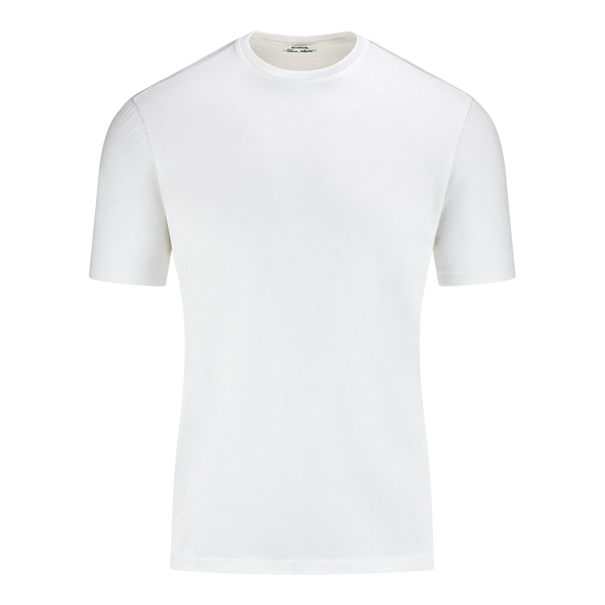 White Giza cotton short sleeve crew neck T-shirt with two side splits.