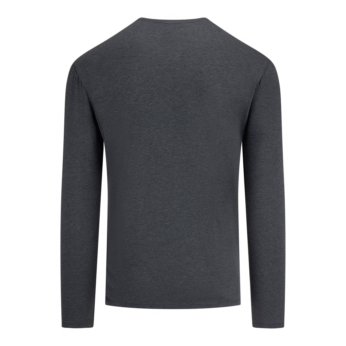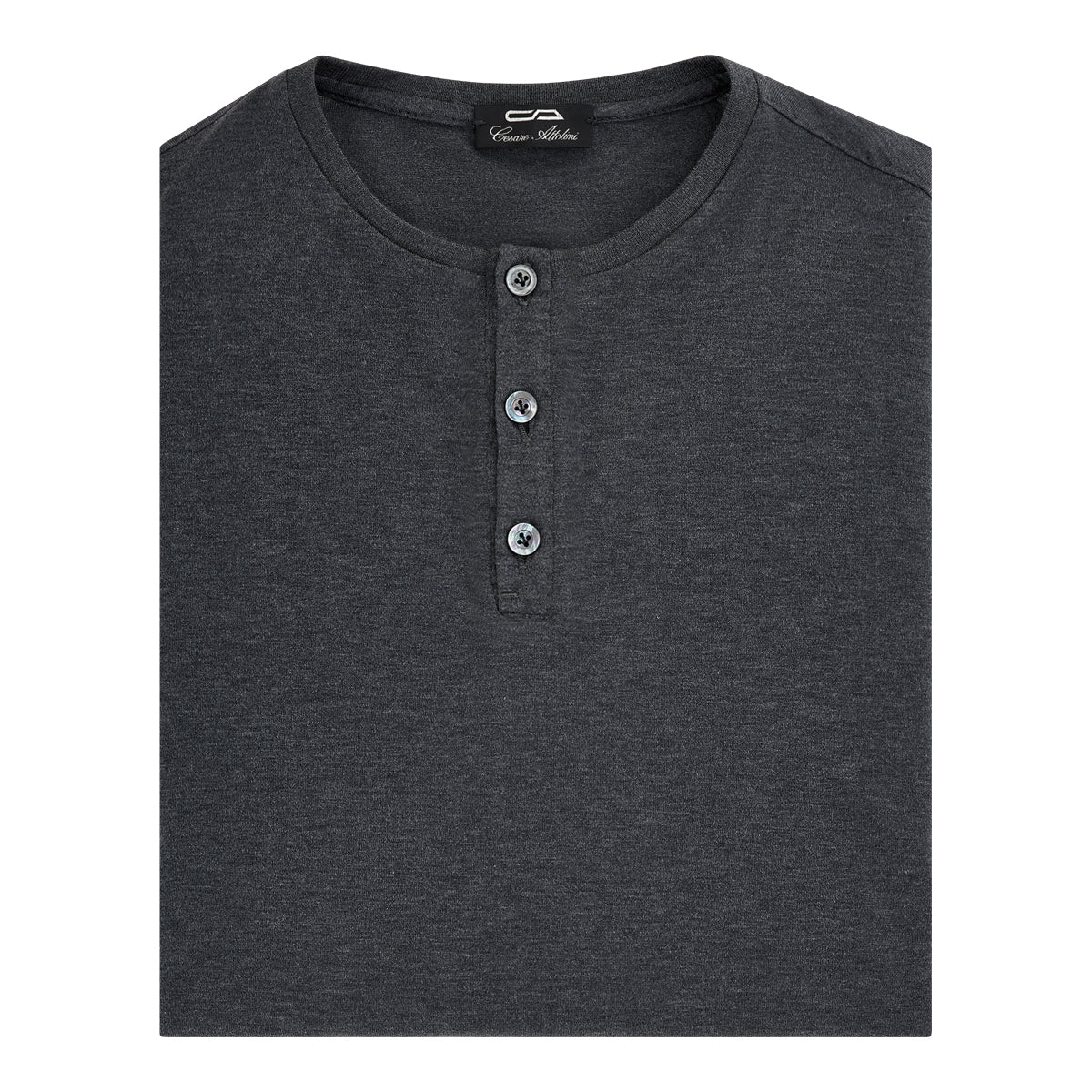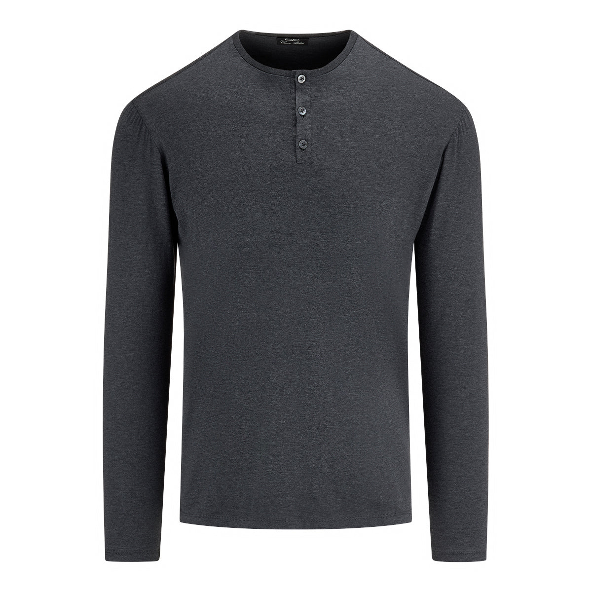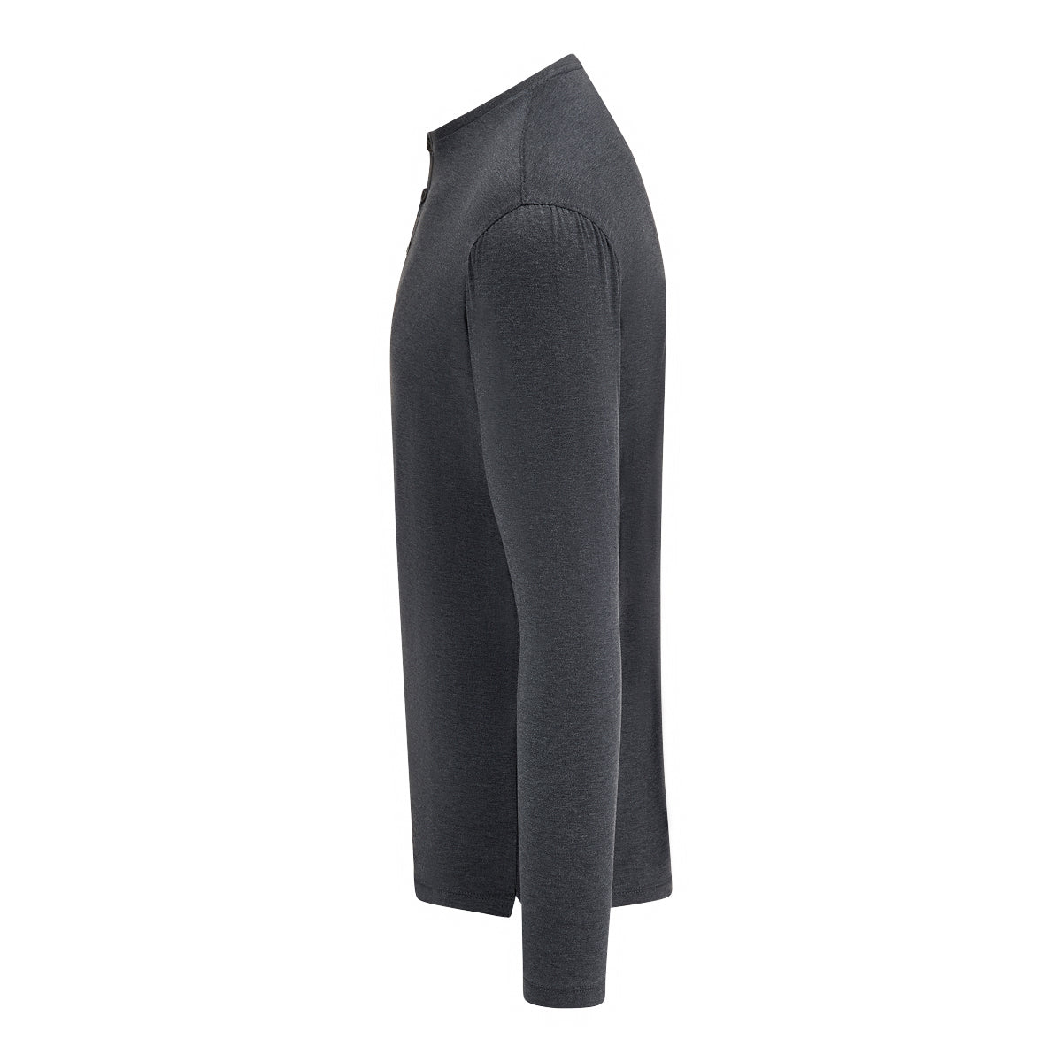Charcoal gray Giza cotton long sleeve Henley T-shirt with two side splits.