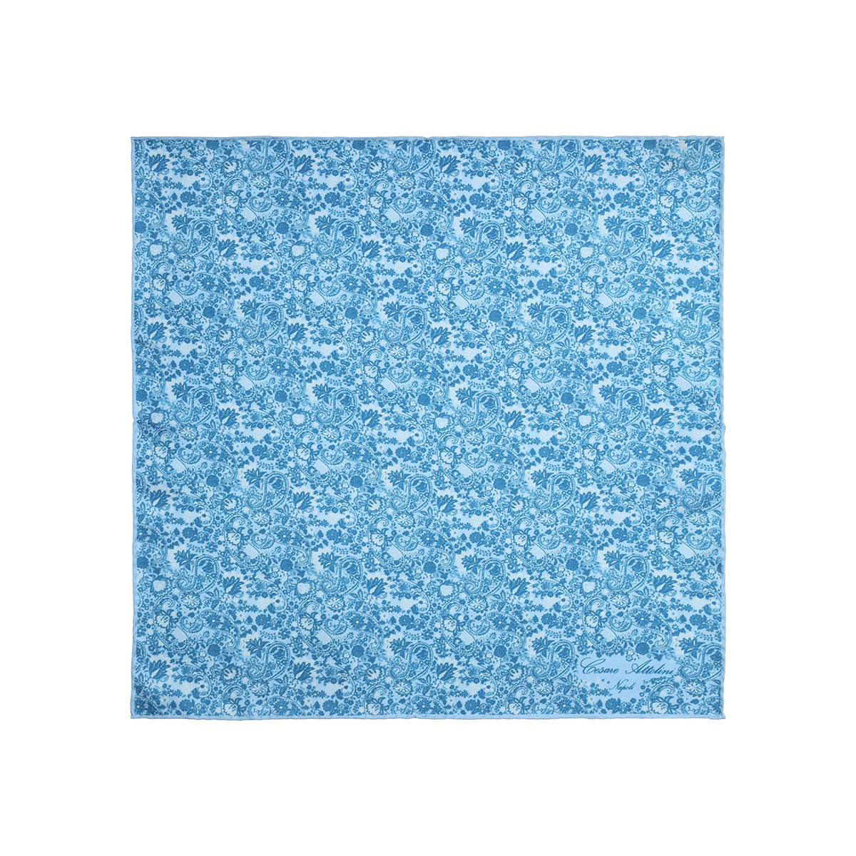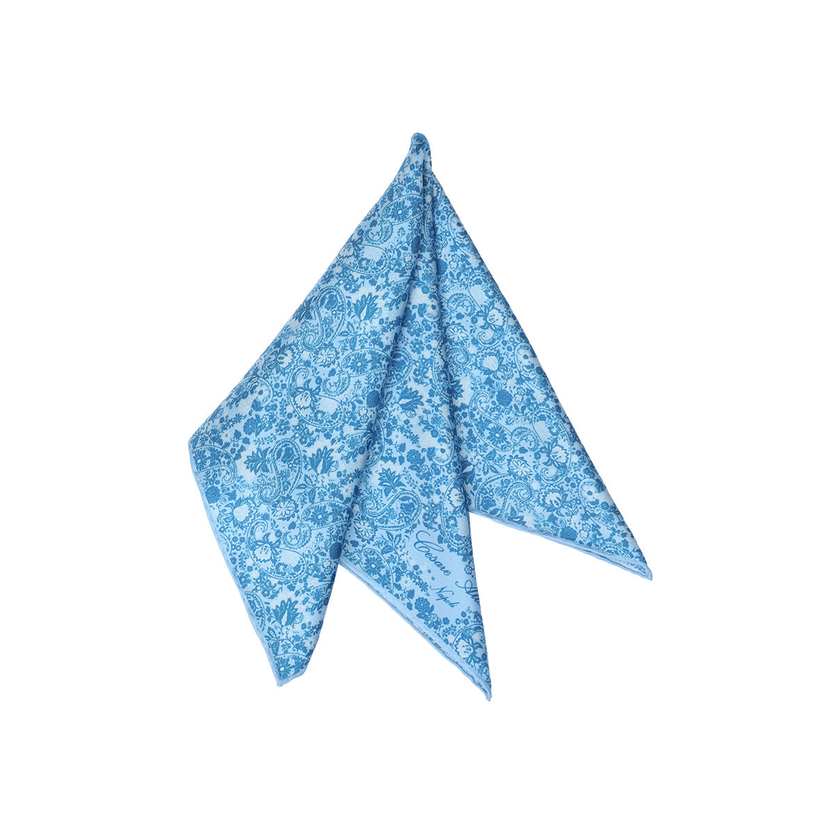 The Cesare Attolini pochette is a totally handmade product, from the single cut of the fabric to the manufacturing. This pochette with handmade hem in silk twill with light blue floral pattern background with Cesare Attolini Napoli logo in light blue contrast, is perfect for completing your looks with a touch of style and refinement.