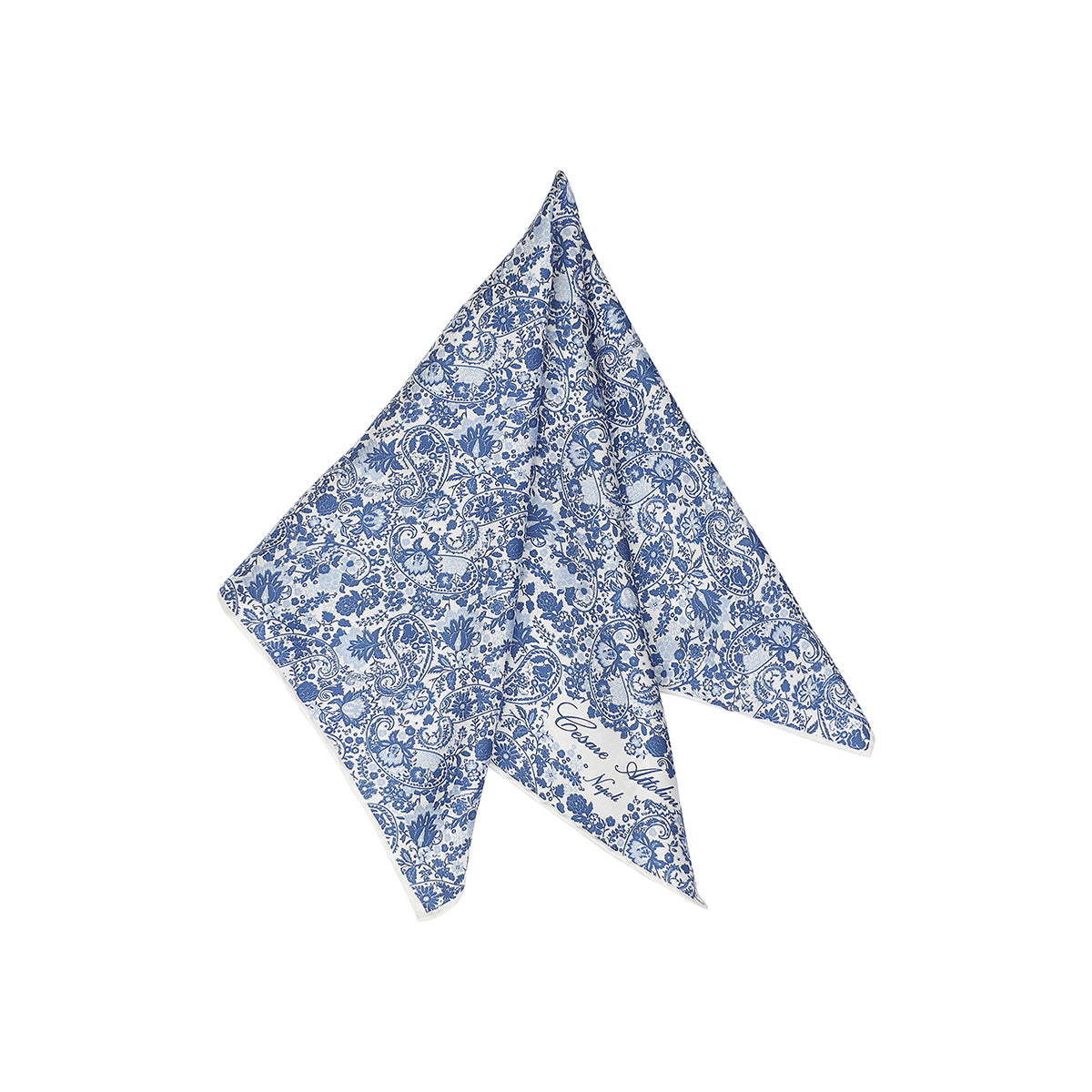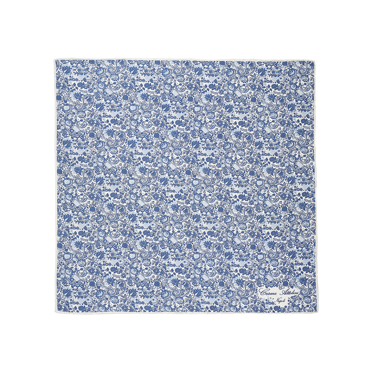 The Cesare Attolini pochette is a totally handmade product, from the single cut of the fabric to the manufacturing. This pochette with handmade hem in silk twill white background with cashmere pattern and blue floral design, is perfect to complete your looks with a touch of style and refinement.