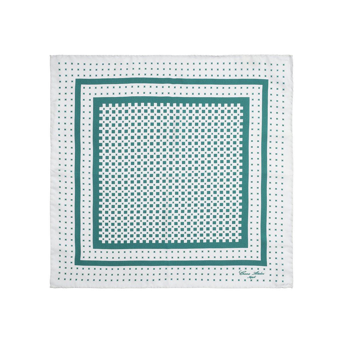 The Cesare Attolini pochette is a totally handmade product, from the single cut of the fabric to the manufacturing. This pochette with handmade hem in silk twill blue background with blue and bluette mosaic pattern with Cesare Attolini Napoli logo in bluette contrast, is perfect to complete your looks with a touch of style and refinement.