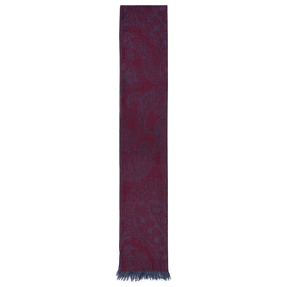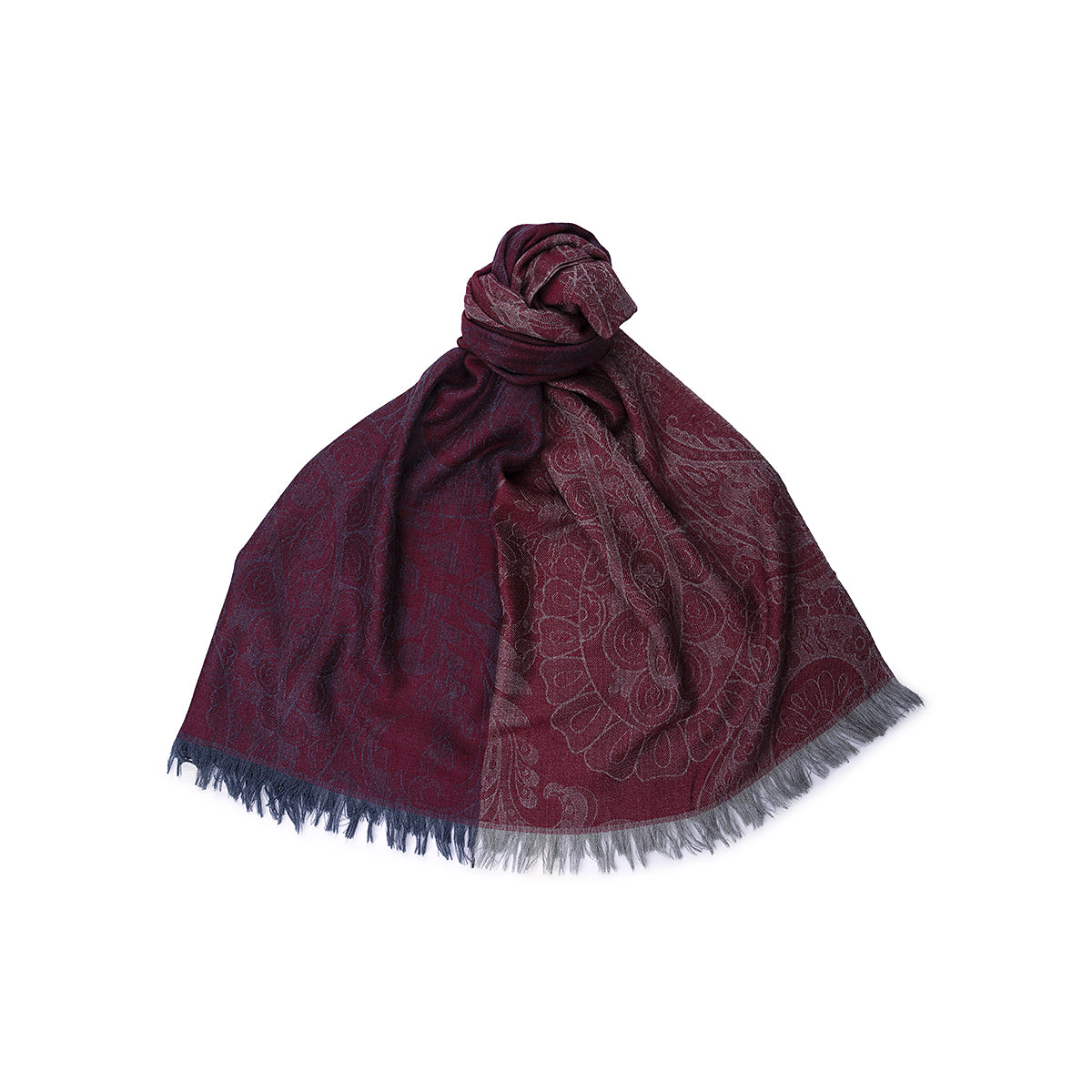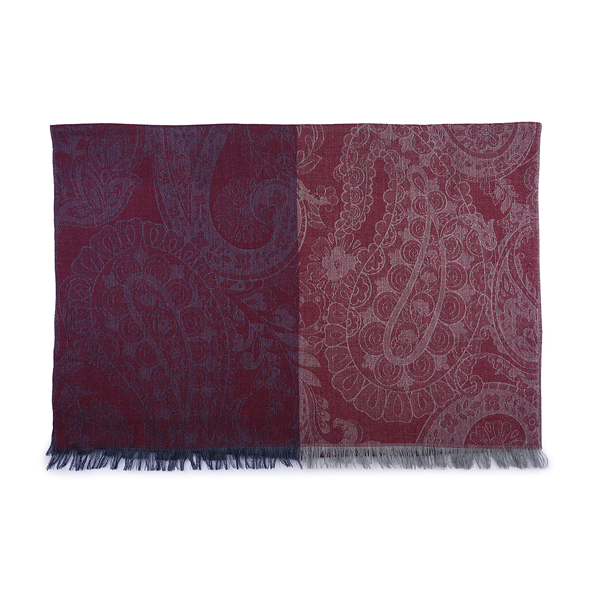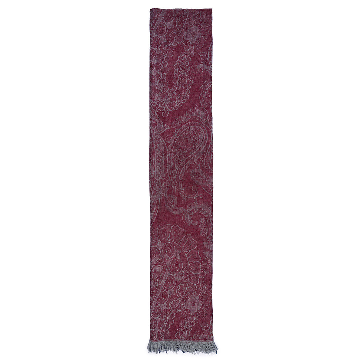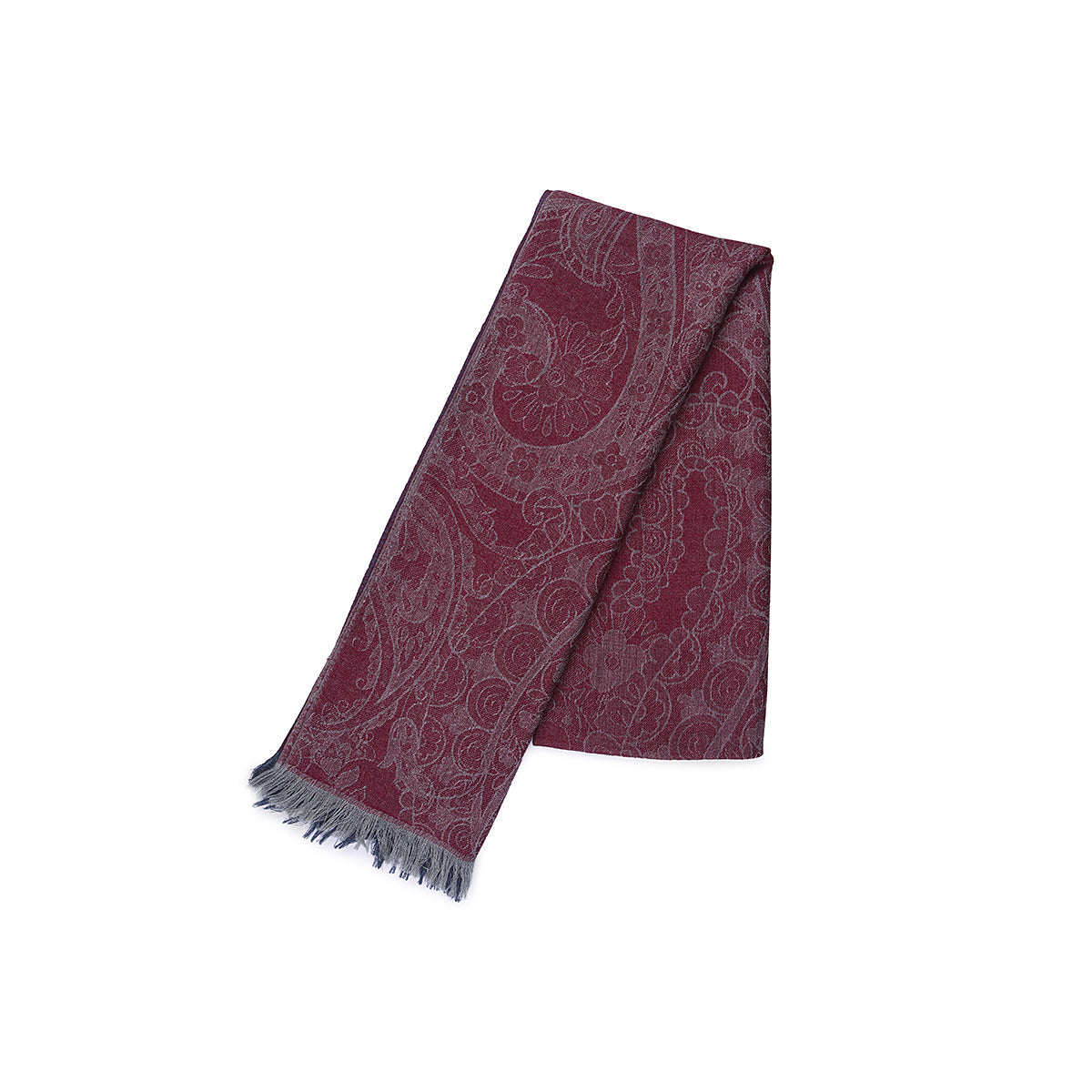 The cashmere and silk jacquard scarf is an accessory that combines the refinement of designs with original color combinations. Made with high quality fabrics, this scarf is a perfect accessory to refine your look. It is distinguished by the elegant two-tone cashmere print in red on a light slate gray background and red on a gray background. This accessory is perfect for those who love a sophisticated style. Small fringe on the edge