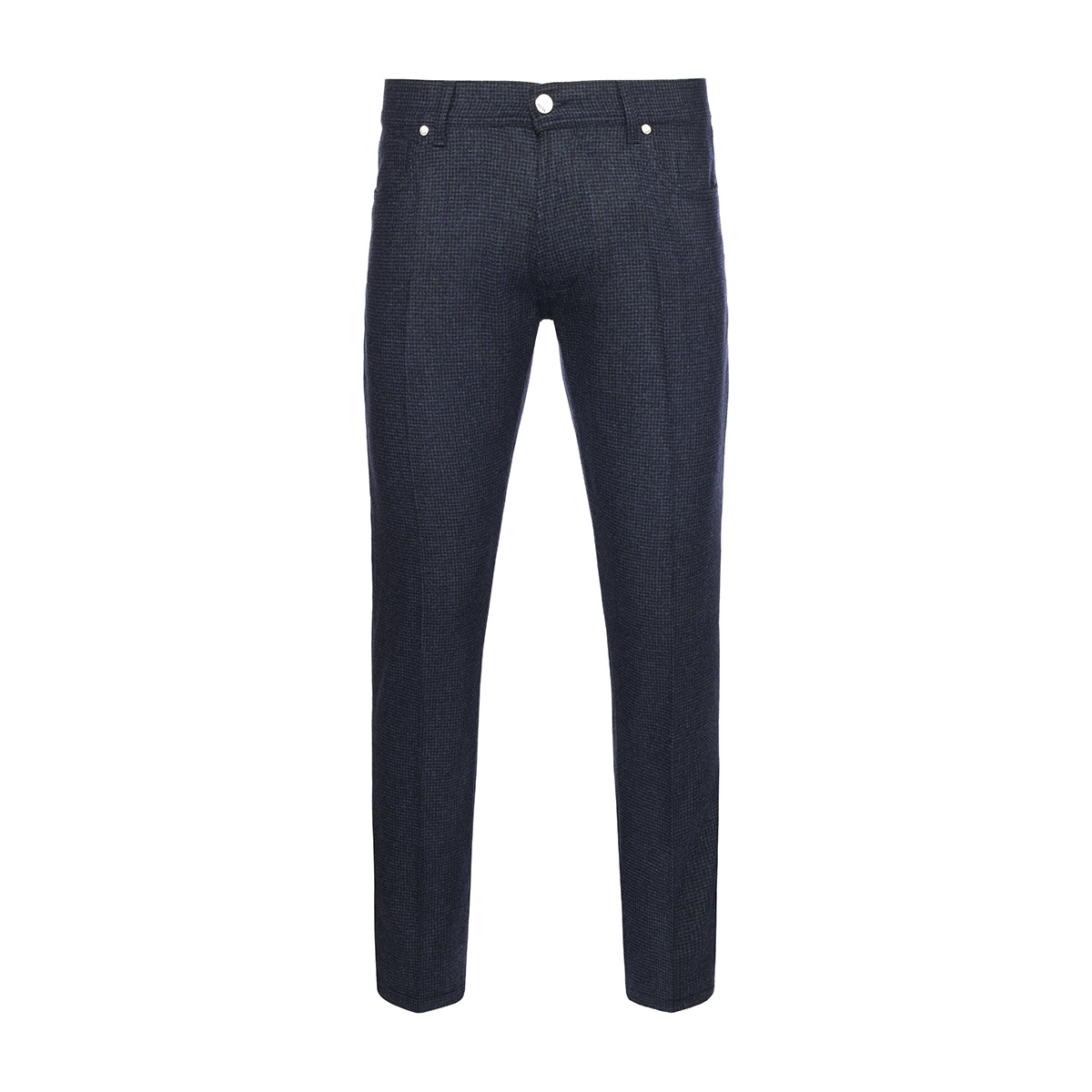 5-pocket wool trousers. This versatile garment is perfect for creating numerous outfits with a casual and fashionable style. Trousers: 5 pockets, with zip, 1 coin pocket on the front and 2 back pockets.